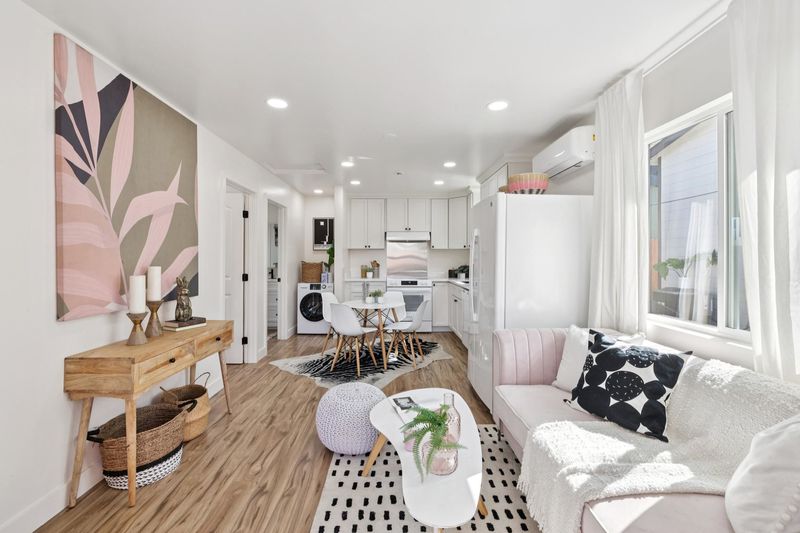 With a rare 10/10 Berkeley Energy Score and full BESO compliance, this fully renovated West Berkeley 3BD/2BA bungalow on a deep lot blends modern efficiency with timeless charm, and now includes a newly built 2BD/1BA full-service ADU. With sunny windows and high ceilings, the main home’s living room is a great space to unwind or gather with loved ones. Gorgeous hardwood floors span into the eat-in kitchen with new appliances, countertops, custom cabinetry, and a laundry area. Two bright bedrooms share a chic new full bath with a huge shower, while the primary bedroom faces the back of the property and boasts a fabulous ensuite bath. The new ADU features an open floorplan, two bedrooms, a modern kitchen and bathroom, laundry, and split AC. Surrounded by new privacy fencing and landscaping, the outdoor space offers both homes areas to relax, entertain, and play with friends and family. A parking pad and long driveway provide space for cars. Nearby, enjoy shopping and dining, top public and private K-12 schools, UC Berkeley with all of its cultural and recreational offerings, Berkeley Marina, parks, and shoreline trails, plus BART for an easy commute.