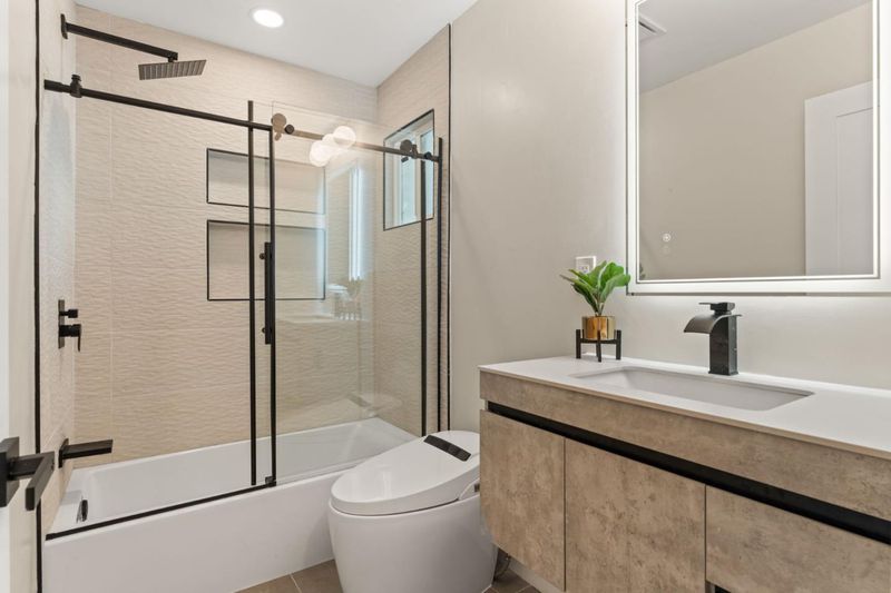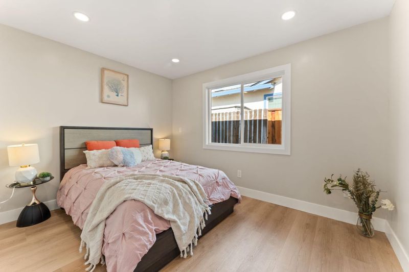 Completely rebuilt like new! This stunning 4-bedroom, 2-bath home was taken down to the studs and rebuilt throughout. Features new framing, insulation, drywall, texture, and finishes. Brand-new slate roof with 100-year lifespan, brand new 200amps electric main panel and sub-panel, brand new electric wires, brand new waterproof vinyl flooring, new doors, and new double-pane windows. Bright open layout with recessed lighting throughout. Modern kitchen with waterfall island, two-tone custom cabinets, and new stainless-steel appliances. Luxury bathrooms with smart toilets. Primary suite includes walk-in closet. Finished garage with epoxy flooring. New energy-efficient HVAC system, new landscaping, and spacious concrete patio in the backyard.