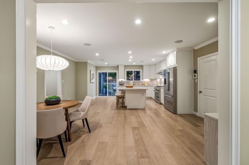 Experience a sophisticated one-level home in a prime Redwood City location. Just blocks from shopping, dining, and activities at Woodside Shopping Plaza, and mere moments from Hwys 280 and 101, this neighborhood is known for its proximity to exciting Downtown Redwood City and serves as a convenient "back door" to Atherton, Menlo Park, Stanford University, and all that Silicon Valley has to offer. Inside, enjoy rich details, moldings, and custom finishes. The intimate-feeling living room features built-ins surrounding the fireplace, while the room flows to the open-concept kitchen with a grand expanded island that can accommodate seating on two sides, making this truly the hub and heart of the home where you can see and enjoy everything both inside and out. Enjoy a chef-quality 6-burner gas range with a vented hood above. There is plenty of space and an eat-in area, plus access to the large Laundry/Multi-purpose room and attached garage. Sliding glass doors continue the living space outdoors to the backyard, which features a deck, large patio, and built-in BBQ center with a fridge and lush plantings. Inside, the bright primary bedroom has multiple closets and a spa-like en-suite with custom finishes, a dual vanity, and a glass shower. Sound system, AC, and more to see in person!