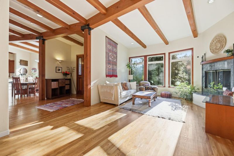 Set on nearly 8 private acres just 10 minutes from downtown Los Gatos, this distinctive executive estate offers rare space, flexibility, and income potential in a redwood setting. The 4,427± SF main home is complemented by a detached studio with adjacent flex/gym space and a separate one-bedroom cottage with own address...creating a versatile compound ideal for modern living. The main residence features high end finishes, a spacious kitchen, exposed beams, custom woodwork, abundant natural light, and seamless indoor-outdoor living with multiple courtyards, decks, and forest views. Outdoor amenities include a private hot tub pergola and a forest fire pit, creating a peaceful, wellness-oriented environment. The detached 600± SF studio is currently rented and offers flexibility for work, guests, or income. The adjacent gym/flex area provides the potential to reconfigure or expand into a one-bedroom layout over time. A separate 800± SF one-bedroom cottage with a new roof, ready for interior finishes and with its own address has previously been rented and is well suited for multigenerational living or additional income. Enjoy privacy and natural beauty just minutes from Los Gatos and Netflix, with access to Loma Prieta Elementary and Los Gatos schools.