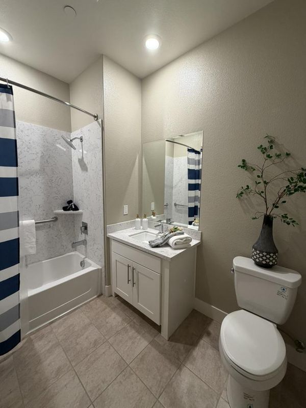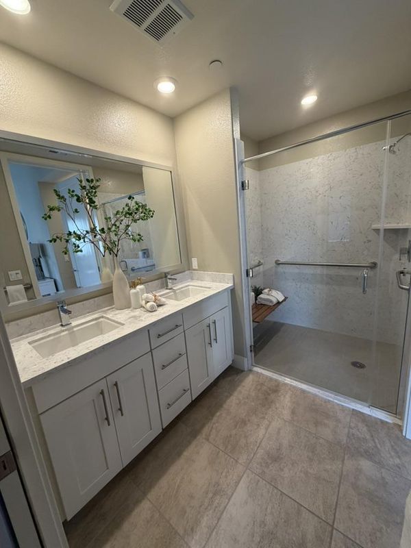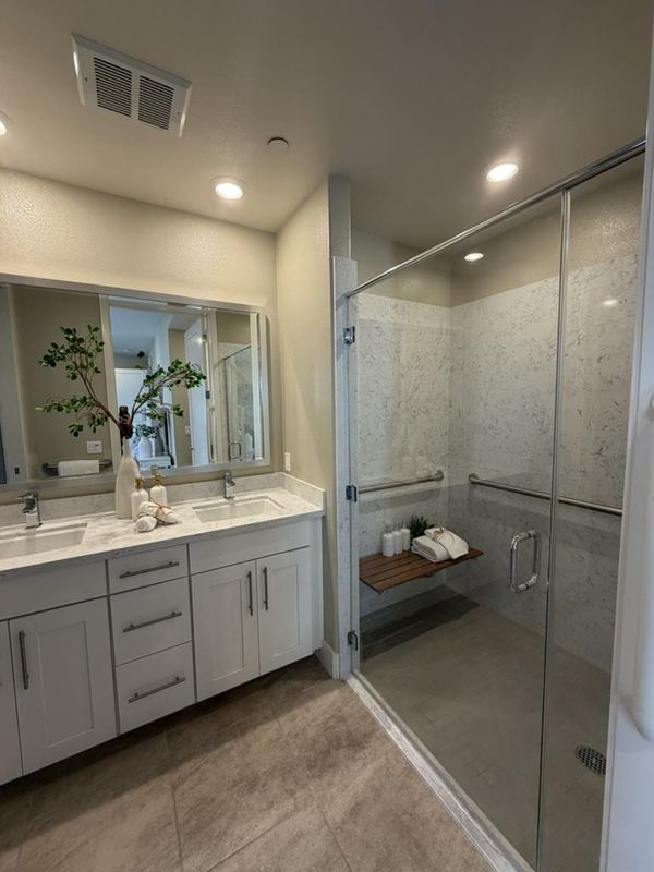 - Double Sinks, Primary - Stall Shower(s), Shower over Tub - 1, Tile, Updated Bath