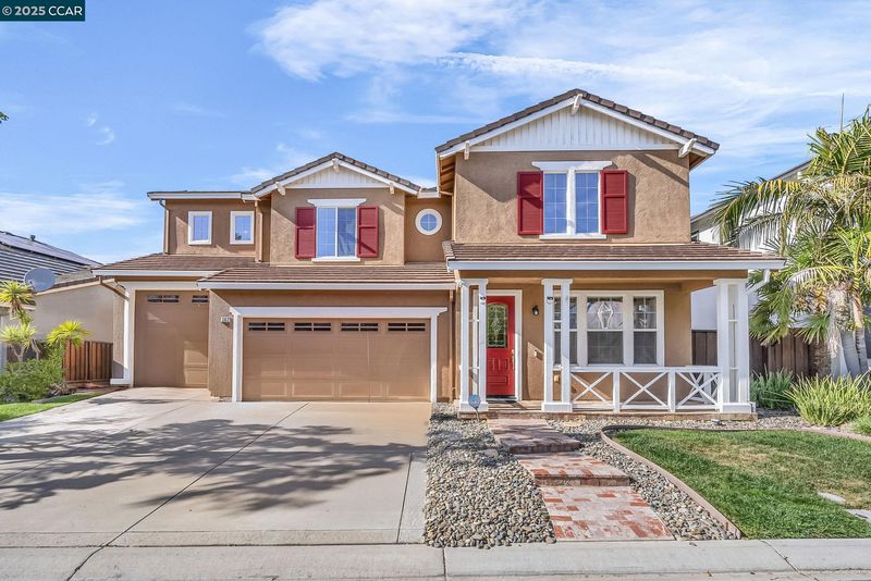DON’T MISS THIS ONE – ASSUMABLE MORTGAGE AT 2.875! Sale includes all mounted TVs and TV mounts throughout the home! This beautiful home features 4 bedrooms, 3 bathrooms, plus a 5th bedroom currently used as a fully furnished theater room with surround sound and 6 recliners. Enjoy high ceilings, an open floor plan, a cozy front room with fireplace, formal dining, and a spacious kitchen with island, nook, and a second fireplace in the living room. Step outside to your private backyard with a solar-heated pool—perfect for relaxing or entertaining. Upstairs includes a large loft and a luxurious primary suite with surround sound and an oversized walk-in closet. The home offers a full bedroom and bathroom downstairs, ideal for guests or multi-gen living. Features include 7 mounted TVs, new ADT system with 4 cameras, new refrigerator, washer, dryer, and an extra fridge and freezer in the garage. Fresh paint, new grass, dog run, and a massive 4-car garage with oversized door and storage racks. Located in a guard-gated community with pool, basketball courts, walking paths, and 24/7 security. Live where you play—Discovery Bay living at its best!
