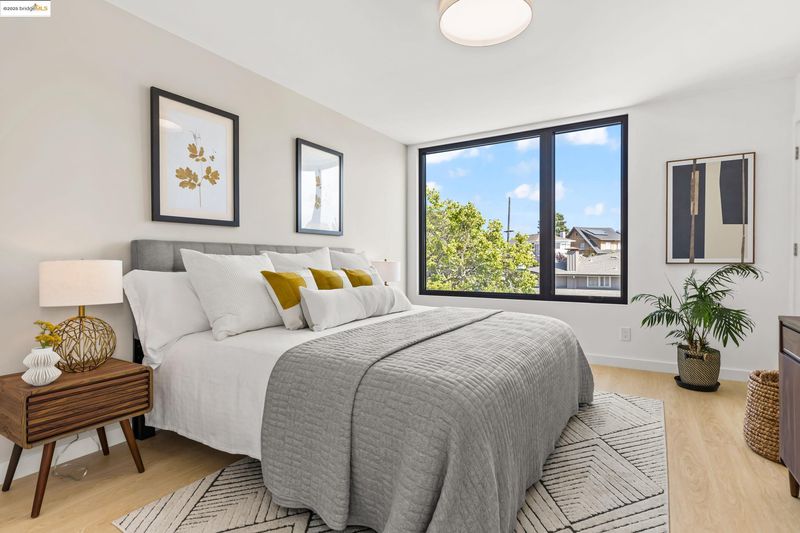 Brand new construction and Green Point Rated, this modern all electric single family home is stunning with three bedrooms, and two baths perfectly dispersed across three levels. Designed by local noted architect Mike Pitler, this home features a sleek and stylish open concept design. Located in the Glenview neighborhood, near Dimond Park and trendy eateries, noted builder Workshop1 built this collection of homes from the ground up as a small modern enclave. The main living area is set perfectly on the second floor and combines the living, dining and kitchen area in one open concept space. The minimalist modern kitchen includes sleek oak and white cabinetry as well as a stainless steel suite of appliances including an electric convection stove. Moving up a level are two comfortable bedrooms and a full bath. On the ground floor, you will find the third bedroom with an additional bathroom, laundry closet and access to the private gated patio outdoor space. With solar panels, heat pump heating and air conditioning, dedicated parking in the parking courtyard , and many more amazing features this home is not to be missed.