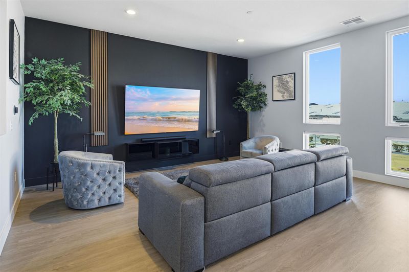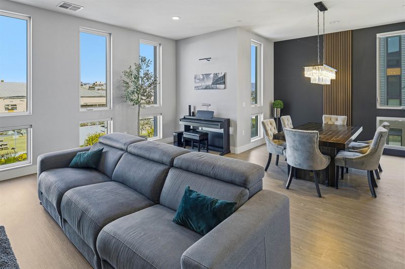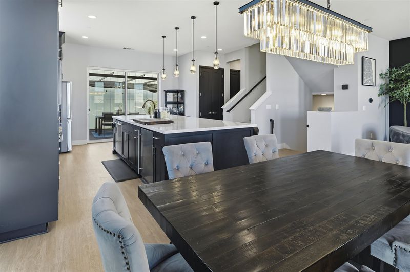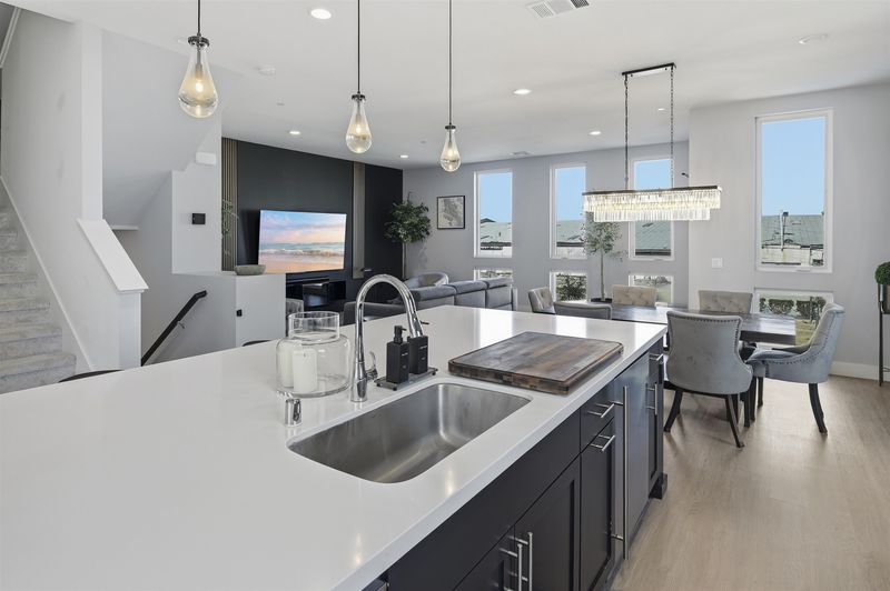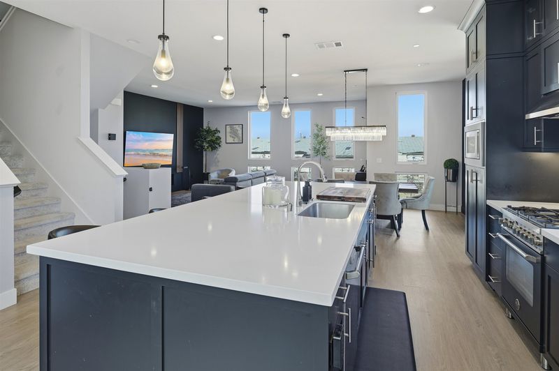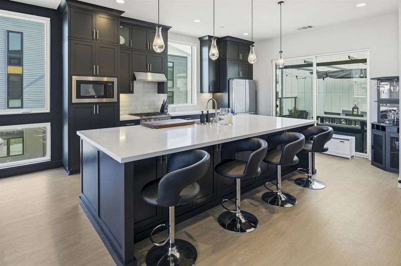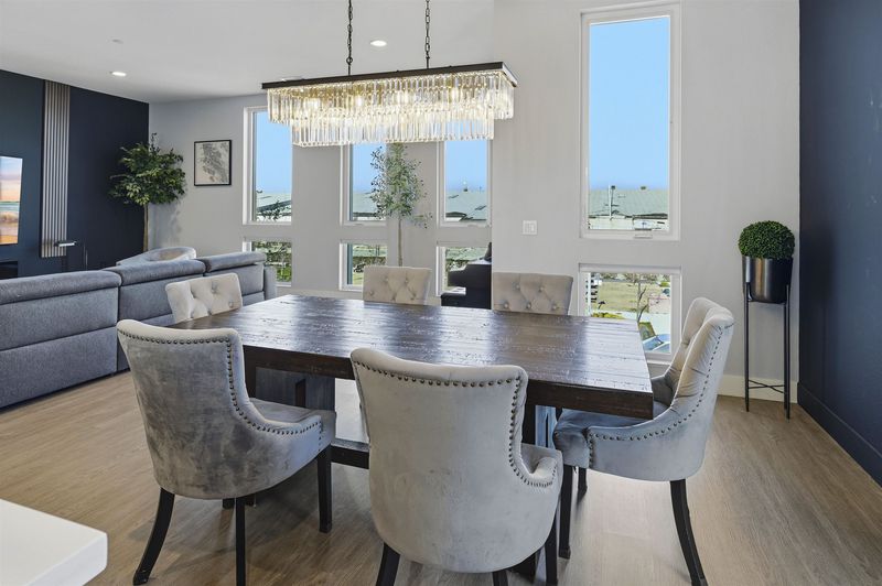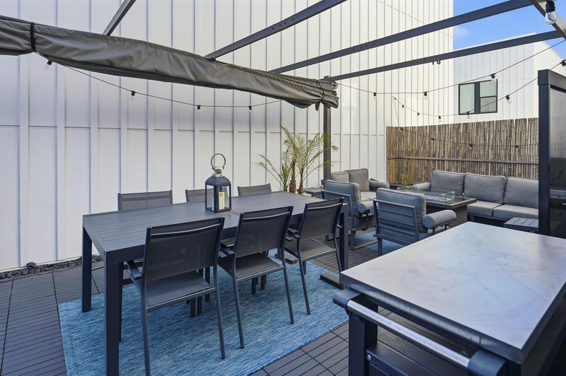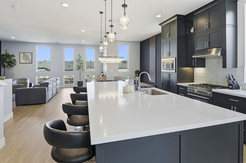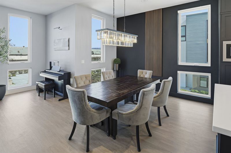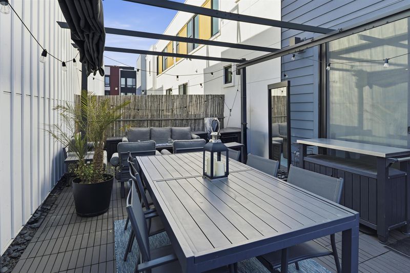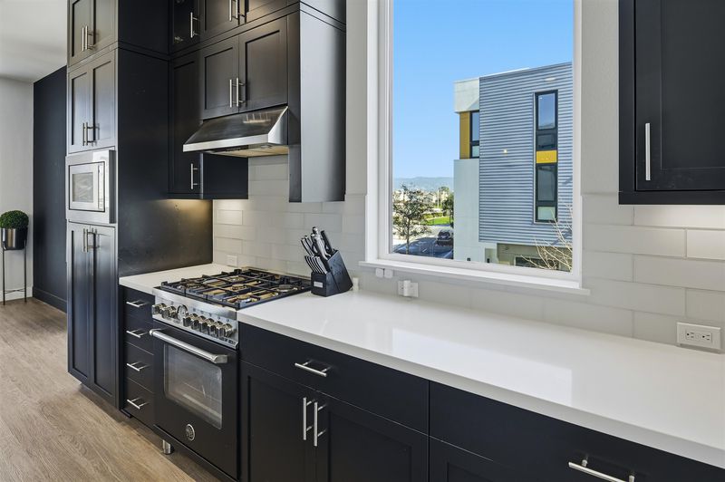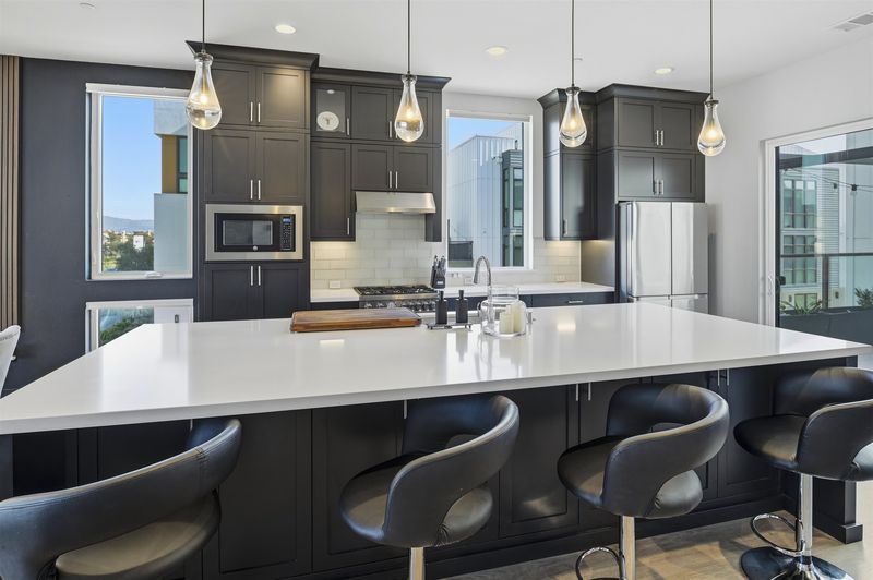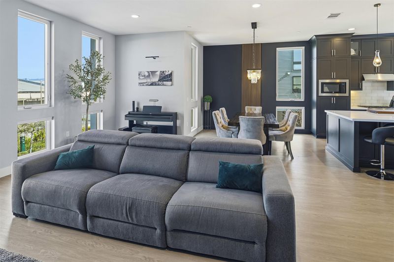 Experience refined living in this beautifully upgraded 4-bedroom, 3.5-bath residence built in 2022. Street-facing and an end unit, the home offers open park views, no direct neighbors in front, and abundant natural light throughout. The multi-level layout begins with a ground-level junior suite featuring soaring 14-foot ceilings, full bath, kitchenette, and generous living space, ideal for guests, multigenerational living, or a private home office. Designed for modern living, the main level features an open-concept layout with floor-to-ceiling windows. The gourmet kitchen is equipped with custom ceiling-height cabinetry, a 6-burner gas range, quartz countertops, and a large island with ample storage, flowing into the dining and living areas. A rooftop patio just off the kitchen extends the living space outdoors, ideal for BBQs, lounging, and entertaining. Upstairs, the primary suite offers dual vanities + a walk-in closet, while an additional bedroom includes its own ensuite bath and walk-in closet. A rare oversized two-car garage accommodates two cars plus space for a home gym or storage, complete with 14-foot ceilings. Ideally located near waterfront parks, Seaplane Lagoon, ferry terminals, schools, and easy access to San Francisco & Oakland. Don't miss out on this one!