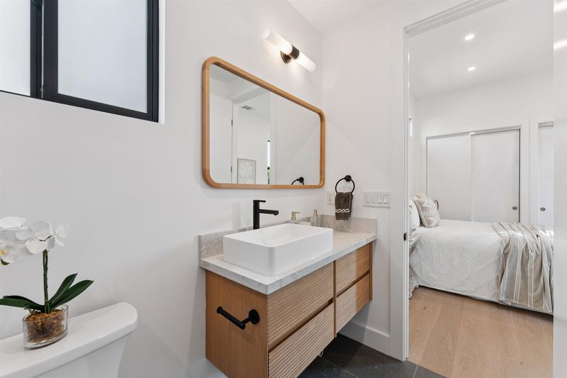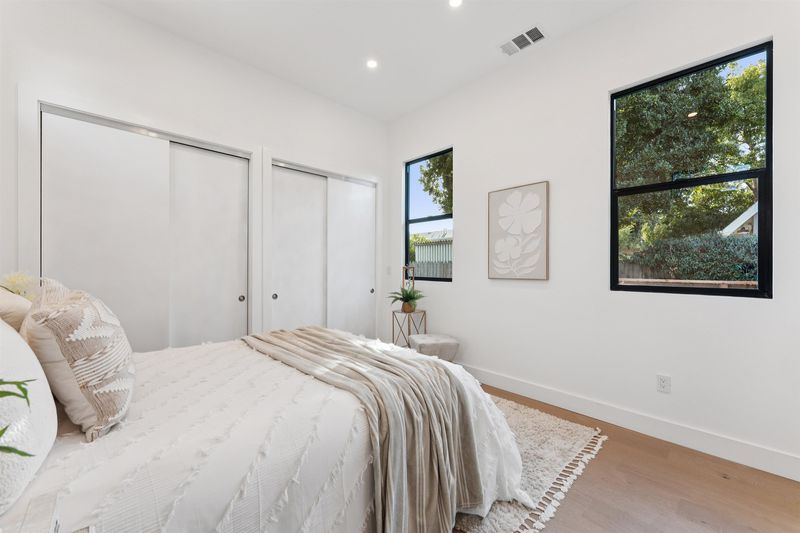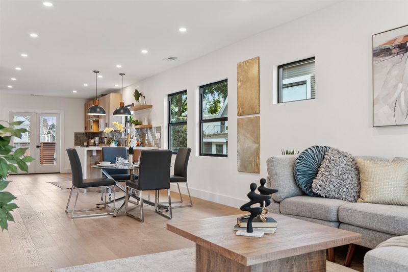 Welcome to this thoughtfully renovated three bedroom three bath residence in the heart of Oakland, where timeless architecture meets modern, effortless living. The home honors its historic roots while introducing a bright, open single level plan designed for today’s lifestyle. The front elevation is defined by a measured rhythm of Edwardian glazing, bringing depth, light, and a refined historic cadence to the street. Natural light fills the interiors, anchored by a generous great room that flows seamlessly into a modern kitchen with refined finishes, well suited for both everyday living and entertaining. Rich hardwood floors, carefully selected fixtures, and quality craftsmanship create a sense of balance, warmth, and quiet elegance throughout. The three bedrooms are comfortably scaled, including two well appointed ensuite retreats. The primary suite features high ceilings that enhance volume and light, creating a calm and elevated sense of space. Each room offers privacy, flexibility, and long term comfort. Outdoors, a fully private and thoughtfully landscaped backyard extends the living experience. A hardwood deck anchors the space and provides an ideal setting for dining, gatherings, or quiet retreat, while layered greenery offers privacy and visual interest.