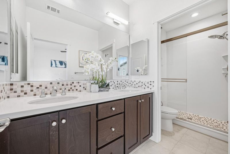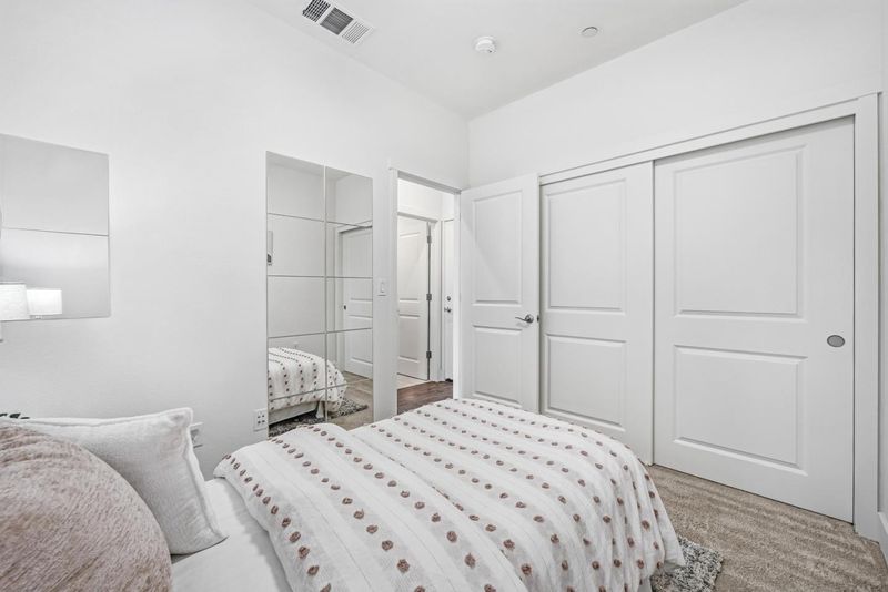 Welcome to this gorgeous eight-year-old townhome located in the highly sought-after Evelyn Place community. This high-quality residence offers four bedrooms and three-and-a-half bathrooms, including a guest bedroom and full bath conveniently located on the first floor. An open-concept floor plan seamlessly connects the spacious kitchen, dining area, and living room perfect for gatherings of all kinds. The home enjoys added privacy with no rear neighbors and lovely courtyard views. The stunning primary suite is filled with natural light and features a generous bathroom with dual vanities, a stall shower, and a walk-in closet. Two additional bedrooms, another full bathroom, and a laundry room complete the peaceful upstairs living area. Additional highlights include upgraded wood flooring, multi-zone heating and air conditioning, and access to a community BBQ area. Ideally located near parks, restaurants, shopping, and top recreational and entertainment venues, this beautiful home offers both comfort and convenience. A must-seecome enjoy the many features and lifestyle this fantastic property has to offer!
