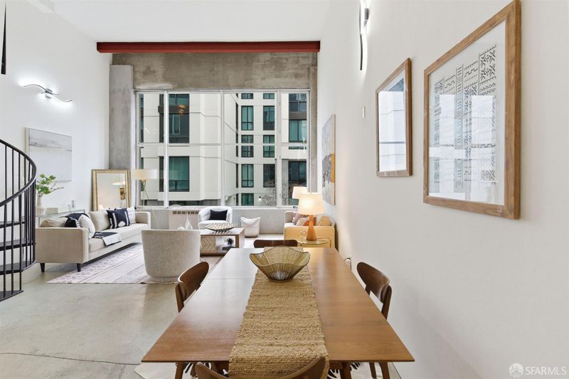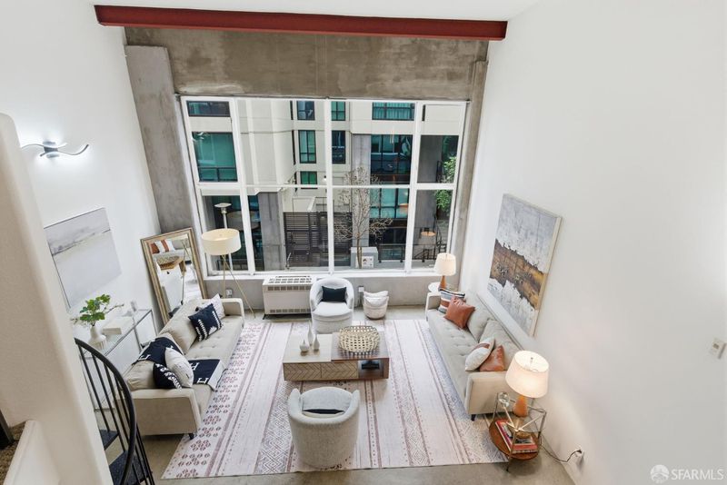 Originally constructed in 1928 as the Sorg Printing Building, this 4-story corner gem on Rincon Hill was transformed in 1996 into 18 Lansing Street, a boutique haven of 28 live/work lofts that seamlessly blend industrial charm with modern sophistication. Unit 203, tucked on the eastern side of the building, is a luminous retreat bathed in natural light streaming through its dramatic, oversized windows. The space exudes quintessential loft appeal with its sleek concrete walls and floors, embodying urban chic at its finest. Designed for flexibility, the layout caters to a variety of lifestyles. The main level boasts a spacious great room, an open kitchen outfitted with brand-new stainless steel appliances and an art deco backsplash, a cozy den, and a convenient half bath for guests. Upstairs, the loft-style bedroom is complete with a full bathroom, a walk-in closet, and a brand-new stacked washer and dryer. The building is secured with a gated entrance and video intercom. The unit includes the a deeded parking space and storage. Nestled in the vibrant heart of Rincon Hill, you're just moments from freeways and within short distance of trendy restaurants, cozy cafes, and grocery shopping. This loft is a great match for the urban dweller seeking both style and substance.