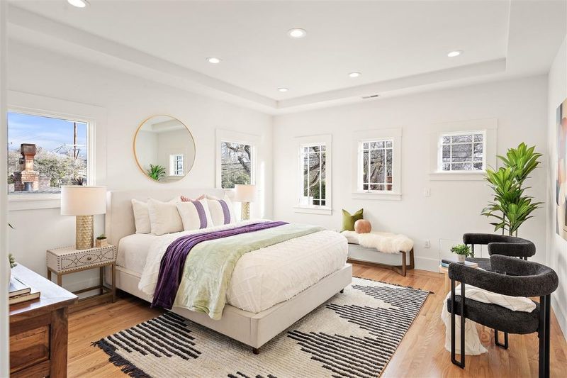Sunny home on a quiet, tree-lined street in South Berkeley, just blocks from Berkeley Bowl West, San Pablo Park, and everyday urban conveniences. Remodeled in 2004, this classic Craftsman blends period character with modern updates, featuring hardwood floors, built-ins, and generous windows that fill the home with natural light. The chef-inspired kitchen anchors the living areas and includes Bosch, Dacor, and Viking appliances designed for everyday cooking and entertaining. The primary suite offers a spa-like bath with walk-in shower, soaking tub, and large walk-in closet. Outside, enjoy a patio, fruit trees, potting shed, and garage—ideal for gardening and weekend projects. Solar enhances efficiency, and the home is located within the Berkeley Unified School District.