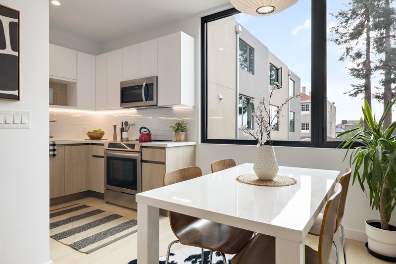 Brand new construction and Green Point Rated, this modern all electric single family home is stunning with three bedrooms, and two baths perfectly dispersed across three levels. SF views from the dining room and upper bedroom make this home shine. Designed by local noted architect Mike Pitler, this home features a sleek and stylish open concept design. Located in the Glenview neighborhood, near Dimond Park and trendy eateries, noted builder Workshop1 built this collection of homes from the ground up as a small modern enclave. The main living area is set perfectly on the second floor and combines the living, dining and kitchen area in one open concept space. The minimalist modern kitchen includes sleek oak and white cabinetry as well as a stainless steel suite of appliances including an electric convection stove. Moving up a level are two comfortable bedrooms and a full bath. On the ground floor, you will find the third bedroom with an additional bathroom, laundry closet and access to the private gated patio outdoor space. With solar panels, heat pump heating and air conditioning, dedicated parking in the parking courtyard , and many more amazing features this home is not to be missed.