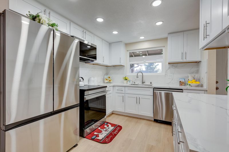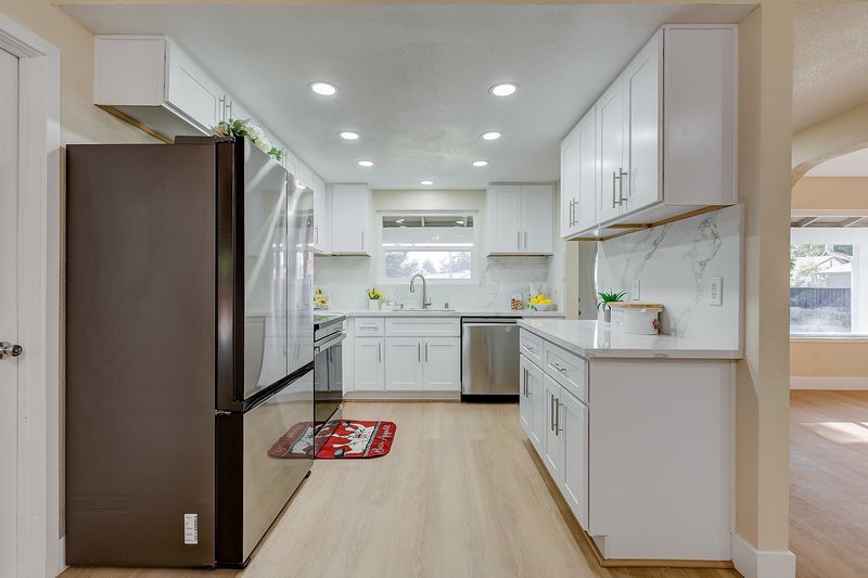Beautifully expanded home with permits on a corner lot in a cul-de-sac. Conveniently located, close to schools, shopping and freeways. Newly painted interiors and exteriors, textured ceilings, dual pane windows, new electricals with modern switches and new LED lights, new LVP flooring throughout, epoxy coated garage floors, new 40 years CS roof, bathrooms with new quartz counters, new vanity sinks, new toilets, new exhaust fans, new stall showers. Elegant living area of 1,633 sq. ft. on a level corner lot of 7,939 sq. ft. 3 bedrooms, 2 bathrooms, 2 cars attached garage. Extra room in the back is a work shop of 400 sq. ft. not included in the sq. ft. of home, new LVP floors, new dual pane windows, freshly painted interiors new main door with new framing, Gourmet kitchen with new quartz slab counters, new full quartz slab back splash, new cabinets, new 4 burner induction cooking range, new microwave, stainless BOSCH, adjoining the kitchen is the formal dining area with chandelier. New washer & dryer. Separate living room, and step down family room with wood burning fireplace. New side fence, new landscaping in front yard and backyard. All termite work done and termite clearance will be provided, too many upgrades to list. Must see to believe. Welcome to your ready move-in home.