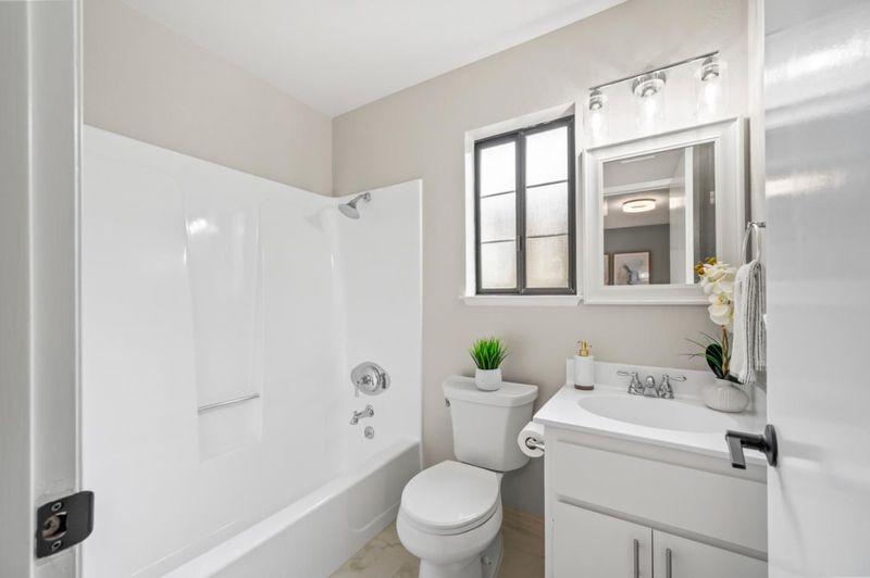 Discover the perfect blend of comfort, style, & convenience in this beautifully updated Sunnyvale home zoned for award-winning schools! You'll love the open kitchen with stainless steel appliances, elegant quartz countertops, & modern flair with black pulls on crisp white Shaker cabinets. Both bedrooms are en-suite for ultimate privacy & convenience. One features soaring vaulted ceilings, while the other opens to a large balcony, ideal for morning coffee & enjoying the Bay Area's beautiful year-round weather. The inviting living room, where recessed lighting & built-in bookshelves frame a cozy fireplace - is perfect for relaxing or entertaining. Outdoors, enjoy a charming backyard with a mature orange tree known to produce hundreds of fruits each season & thoughtfully designed patio area perfect for outdoor dining or lounging. Nestled within a well-maintained complex, this home has dedicated in-unit laundry room & private garage. Plus, fantastic central Silicon Valley location near major thoroughfares for commuters; high-end shops; scrumptious restaurants; beautiful parks; & just two miles to Downtown Sunnyvale's historic Murphy Avenue with farmers' market! Students have access to excellent schools in Cherry Chase Elementary, Sunnyvale Middle, & Homestead High (buyer to verify)!
