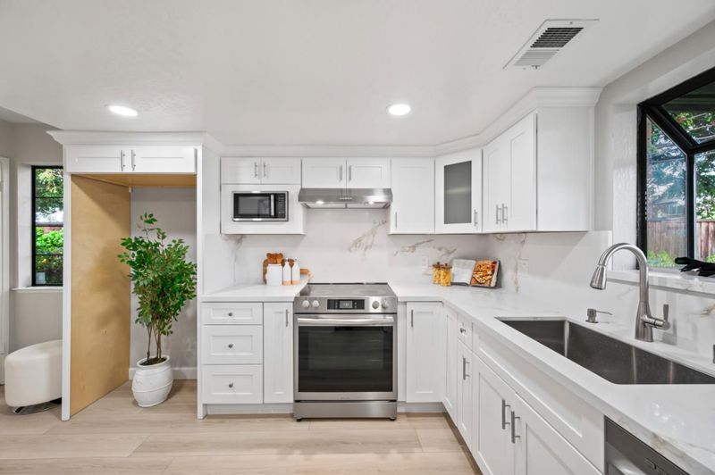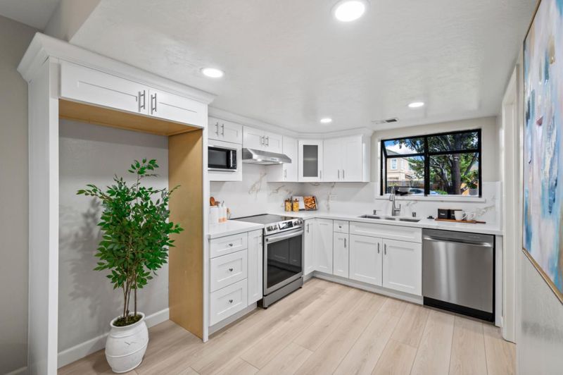 - 220 Volt Outlet, Countertop - Quartz, Dishwasher, Exhaust Fan, Garbage Disposal, Microwave, Oven Range - Electric