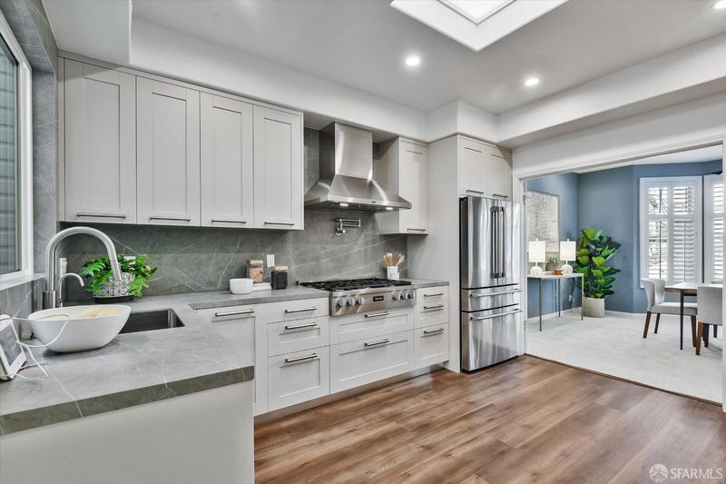Perched on the top floor, this exceptional 4-bedroom, 3-bathroom condominium offers approximately 2,168 (per appraisal 1/4/21) sq ft living space. A beautifully renovated chef's kitchen flows seamlessly into the formal dining room and expansive living area, with skylights that bring in natural light. The bathrooms and dedicated laundry room have been updated with modern finishes. Exclusive to this residence, a private roof deck serves as a tranquil retreat, showcasing open views across the Richmond District. Ideally located just one block from Golden Gate Park and near neighborhood boutiques, cafs, and dining.