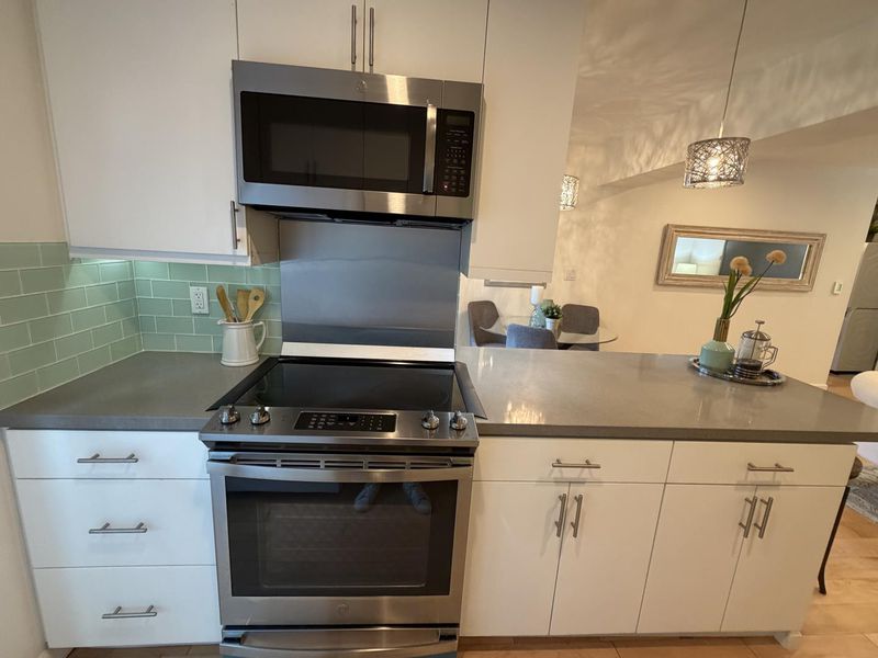 - Cooktop - Electric, Countertop - Quartz, Dishwasher, Microwave, Oven Range - Electric, Refrigerator
