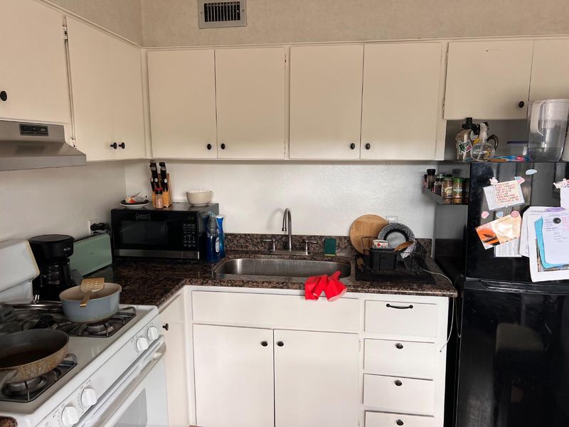 - Cooktop - Gas, Countertop - Granite, Hood Over Range, Microwave, Oven Range - Gas, Refrigerator