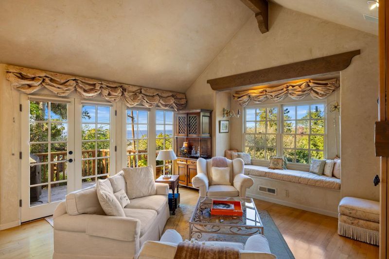 'I Baci Dal Sole, a sun-kissed Carmel-by-the-Sea gem, where quintessential Carmel charm and coastal beauty meet. Nestled four blocks from Ocean Avenue, this 1,616 SF home offers a serene lifestyle and scenic views. Inside, discover open, airy spaces that flow seamlessly, living and dining areas bathed in natural light, and ocean views throughout the house as your daily backdrop. Step out onto the ocean-view deck, where morning coffee or sunset toasts feel like something right out of a dream. With 3 bedrooms and 2 baths, warm plaster walls, high ceilings, skylights, open beam ceilings and hardwood floors, there is nothing that is missed. Outside, a magical garden awaits, providing a tranquil private oasis complete with a magnificent oak tree. A short stroll to downtown Carmel, with its picturesque shops, renowned restaurants, and world-class galleries. I Baci Dal Sole invites you to live your California dreamright here in Carmel-by-the-Sea.