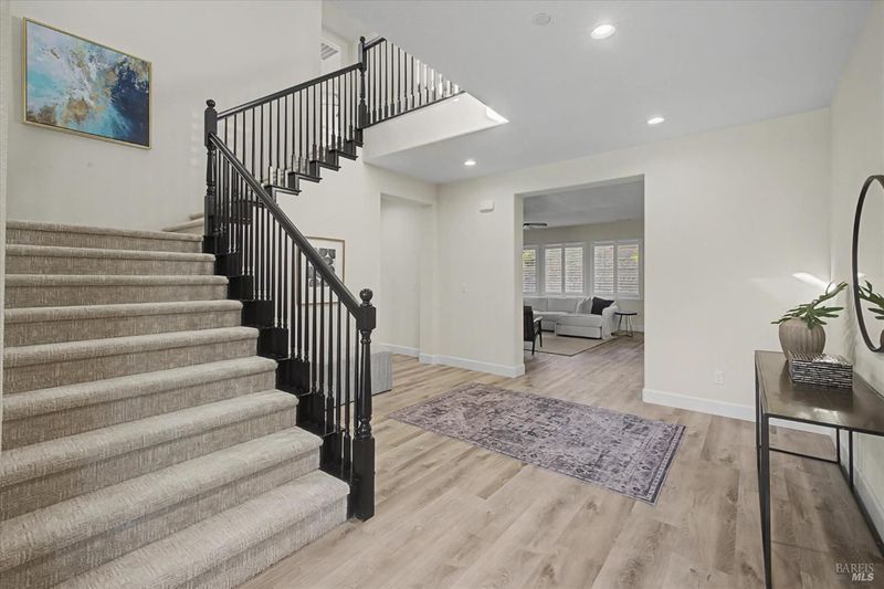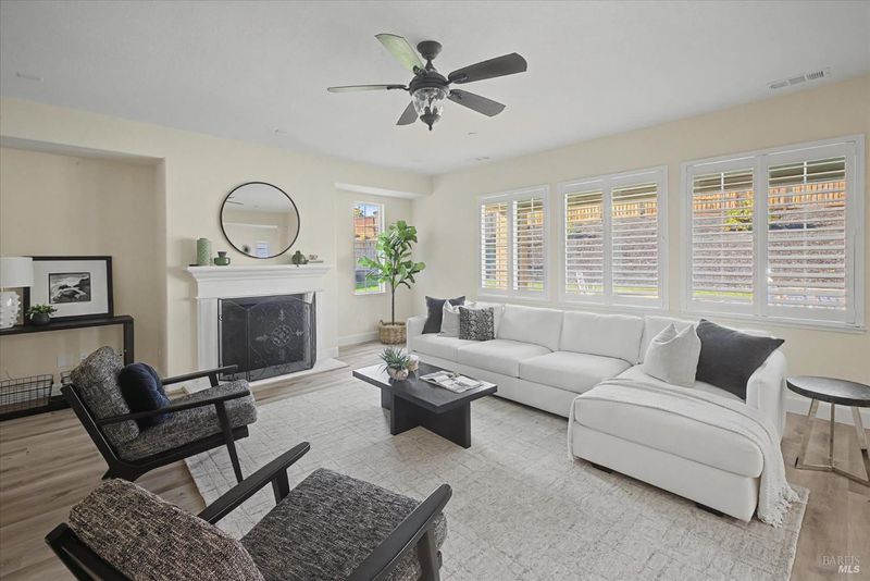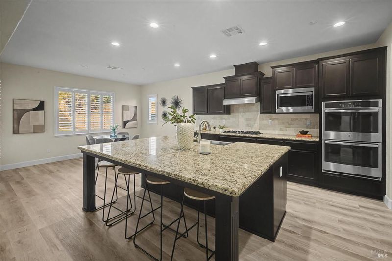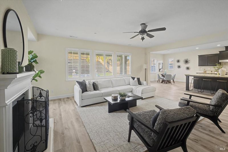 Discover luxury living in this spacious 5-bedroom, 4.5-bath home offering approximately 3,871 sq ft in Vacaville's sought-after Cheyenne neighborhood. This move-in-ready home features a grand entry, open-concept floor plan, and high-end finishes throughout, including plantation shutters and designer details. The chef's kitchen showcases a huge center island, abundant cabinetry, and seamless flow into the main living areasperfect for entertaining and everyday comfort. A desirable downstairs junior suite provides flexibility for guests, multigenerational living, or a private home office. Step into a resort-style backyard with a swimming pool, expansive patio space, and beautifully landscaped front and rear yards ideal for indoor-outdoor living. Energy-efficient owned solar adds long-term value, while the generous layout offers large bedrooms, multiple living spaces, and functional versatility. Located near parks, shopping, and commuter routes, this exceptional property combines space, style, and modern convenience in one impressive Vacaville home. Welcome Home!