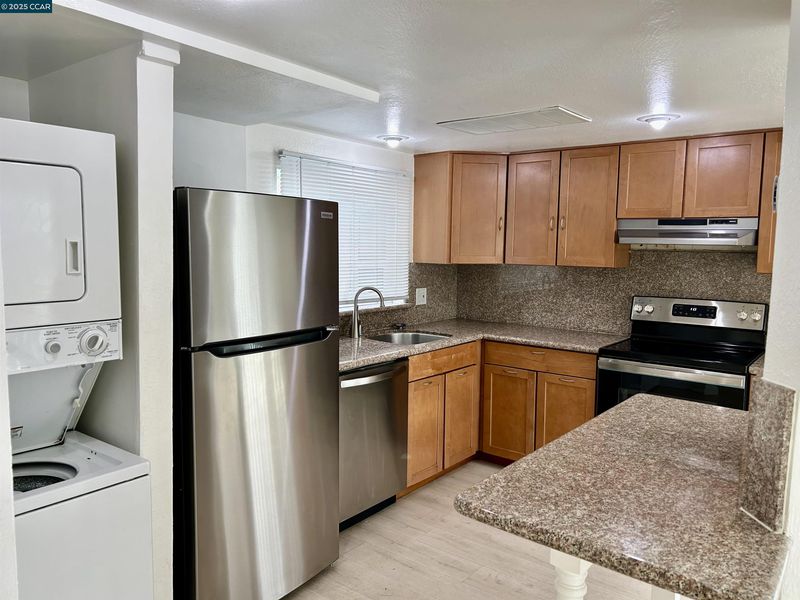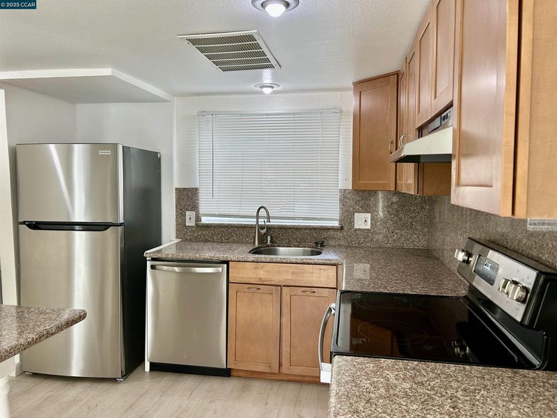 - Dishwasher, Electric Range, Gas Water Heater, 220 Volt Outlet, Stone Counters, Eat-in Kitchen, Electric Range/Cooktop, Disposal, Updated Kitchen