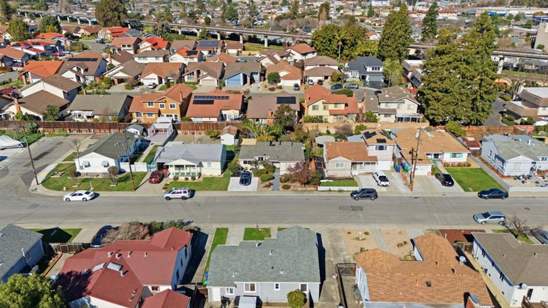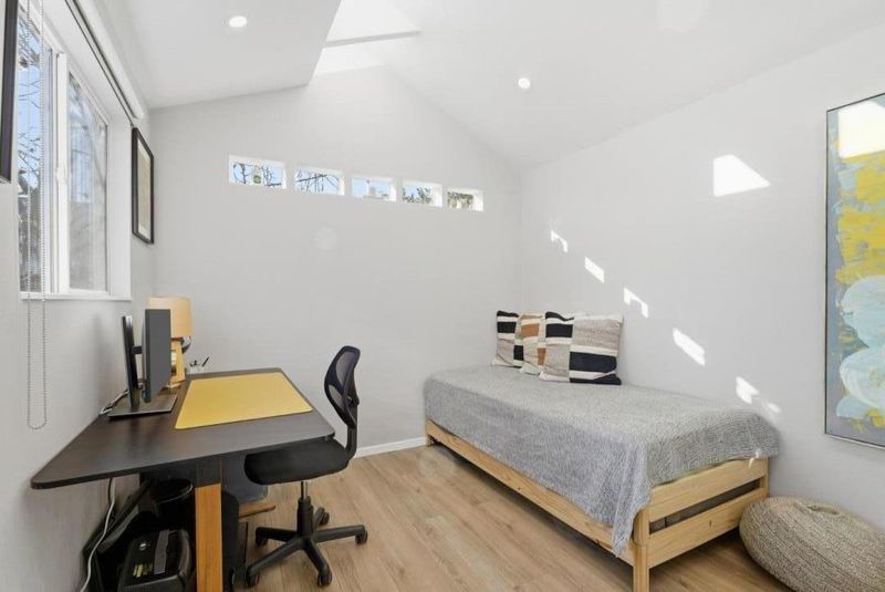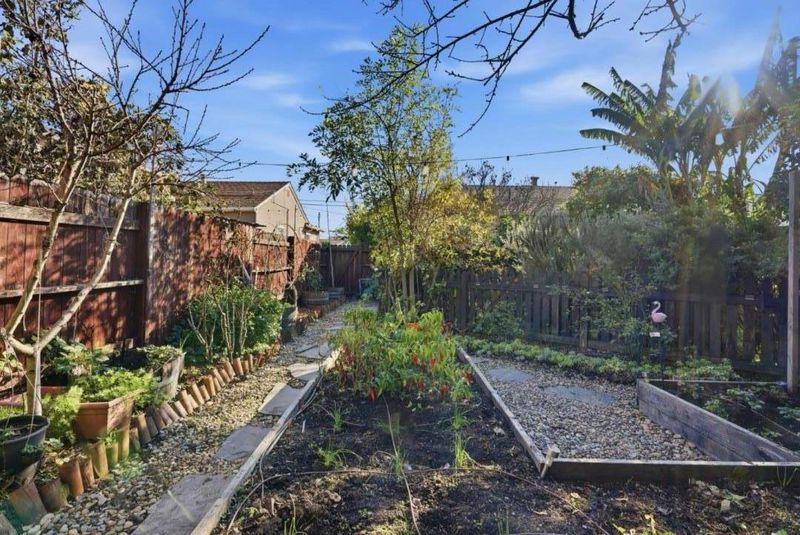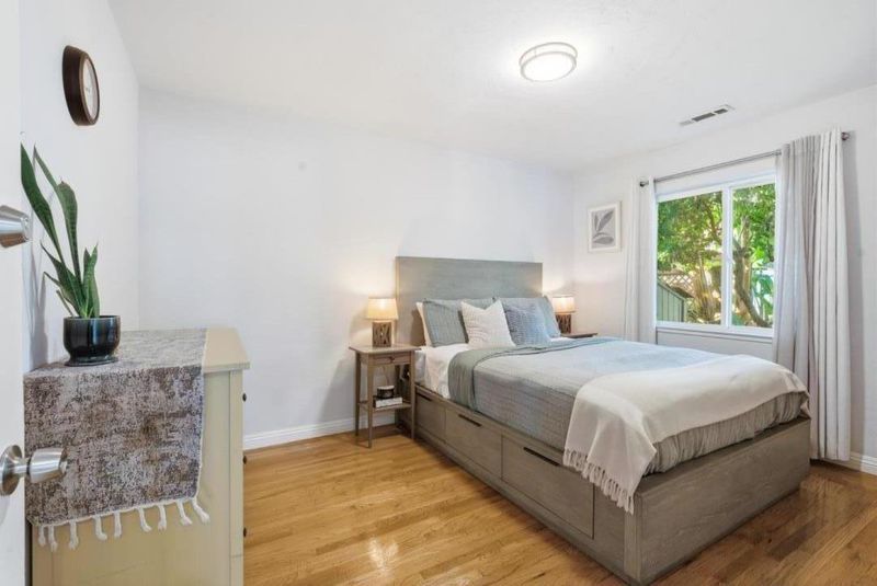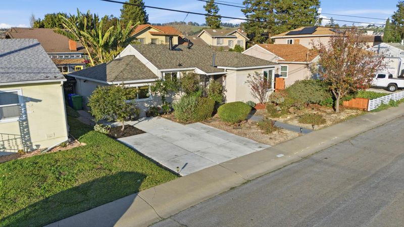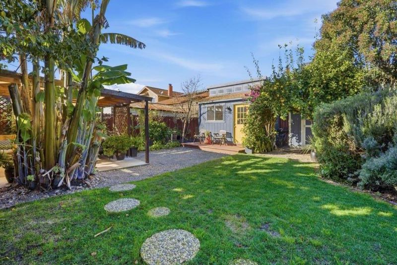 Welcome to 475 Nabor Street, a thoughtfully updated home blending character and modern functionality. Inside, preserved original hardwood floors and abundant natural light create a warm living space. The kitchen features premium leathered granite countertops and high end Hansgrohe fixtures, while the bathroom offers a Kohler cast iron soaking tub for a spa like feel. A standout feature is the newly constructed detached executive office completed in 2024. Fully permitted and built to current Title 24 energy standards, this insulated conditioned space includes heating, air conditioning, and a dedicated electrical sub panel ideal for remote work, studio use, or flexible bonus space. The composition shingle roof was updated approximately seven years ago. The property offers a two car driveway, a weather tight utility shed, and a beautifully curated food forest backyard with mature fruit trees including apple, peach, plum, citrus, berries, and grapevines creating privacy and a true garden retreat. Conveniently located near downtown San Leandro, parks, shopping, dining, and commuter access, and a 10-15 minute walk from the Bart station. This home delivers charm, flexibility, and comfortable indoor outdoor living all in one.