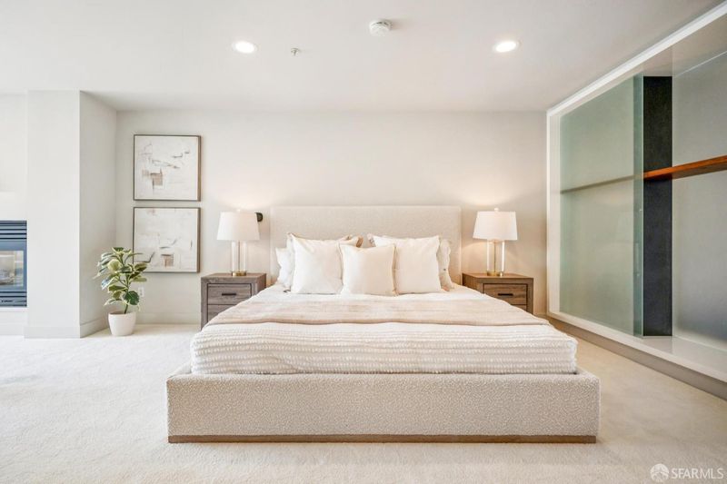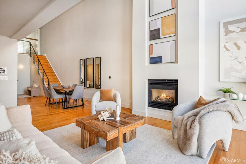 This expansive tri-level loft is truly one of a kind, offering approximately 2,597 square feet of thoughtfully designed living space. The dramatic main living level is anchored by a fireplace and framed by two stories of windows, creating an airy, light-filled setting. An updated kitchen and a versatile bonus lounge or seating area provide flexibility for both everyday living and entertaining. The residence features three bedrooms and two-and-a-half baths, complemented by modern upgrades including recessed speakers, with Sonos connectivity, automated window treatments, and beautifully appointed luxury bathrooms. The upper level is dedicated to two bedrooms. The primary suite, features a living area fireplace, air conditioning, large walk-in closet, and a spa-inspired bath with soaking tub and separate walk-in shower. A private terrace crowns the suite, offering an inviting outdoor retreat. A second bedroom features a wall of sliding panels that open the space, along with integrated media and sound. On the lower level, the third bedroom doubles perfectly as a home office, with direct street access. Each of the three levels enjoys its own independent entrance, enhancing privacy and flexibility. Set within a boutique six-unit live/work building, the home includes one-car parking, deeded storage, and in-unit washer and dryer.