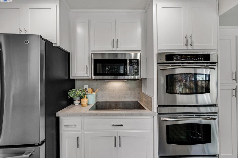 - Dishwasher, Double Oven, Electric Range, Microwave, Oven, Refrigerator, Dryer, Washer, Electric Water Heater, Water Softener, Breakfast Bar, Stone Counters, Eat-in Kitchen, Electric Range/Cooktop, Disposal, Oven Built-in, Updated Kitchen