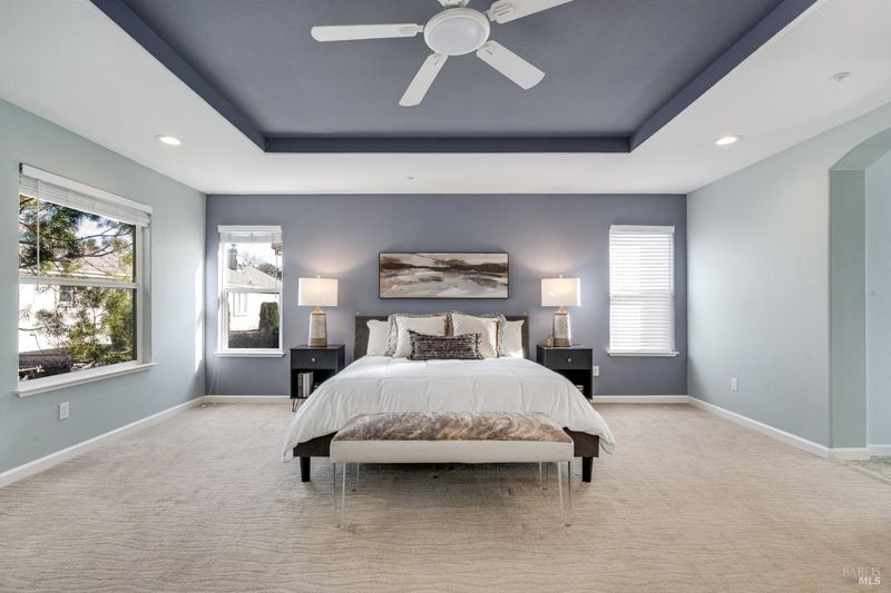 Situated in Napa's Silverado Creek neighborhood, this contemporary 4-bedroom, 3.5-bath home offers approx. 2,830 sq ft of flexible living space. The layout features multiple gathering areas, a striking spiral staircase, and a kitchen designed for cooking and entertaining with island seating and dining space. Newly added French doors connect the kitchen to a private backyard patio, creating seamless indoor-outdoor flow. The compact, low-maintenance yard includes a patio, astroturf, rose bushes, and a lemon tree. A downstairs en-suite office provides a quiet workspace, while upstairs bedrooms and lounge areas offer privacy for guests or family. Recent updates include a new front lawn and energy-efficient HVAC system with allergy filtration. Close to Eleven Eleven Winery, Silverado Trail wineries, hiking trails, and downtown Napa.