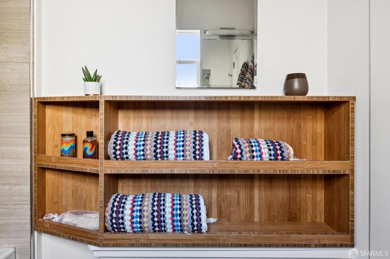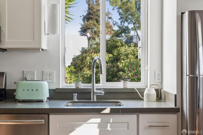 Welcome to this stylish junior one-bedroom retreat in the heart of San Francisco's Mission Dolores neighborhood. Thoughtfully designed, this Clinton Park residence stands as a separate dwelling in the rear of the property, offering exceptional privacy and a peaceful setting away from the street. A rare find! Enter through the front door into a light-filled living space highlighted by hardwood floors, a gas stove fireplace, and abundant cabinets and drawers. The efficient layout opens the home for easy living, dining, and entertaining. The sleek white kitchen features custom cabinetry, stainless steel appliances, and a window that fills the space with natural light. Tucked away for privacy, the bedroom alcove thoughtfully separates sleeping from living areas. The tastefully modernized bathroom showcases quality finishes, built-in wood shelving, and a beautifully tiled tub/shower combination. Additional highlights include one-car parking in a shared three-car garage, attached generous oversized storage area, quaint outdoor patio seating, and stacked in-unit laundry. Nestled on a quiet street, 178A Clinton Park boasts a 99 Walk Score with Whole Foods nearby, as well as easy access to public transit and Dolores Park. Experience modern comfort with classic city charm at 178A Clinton Park!