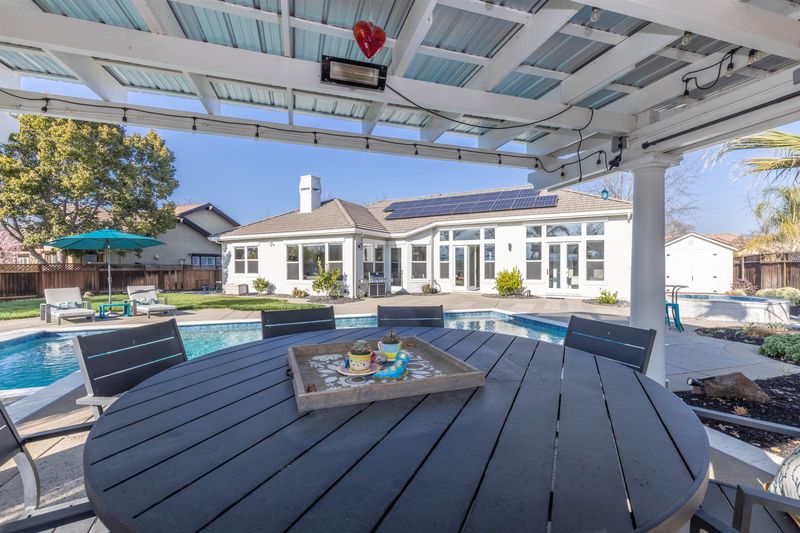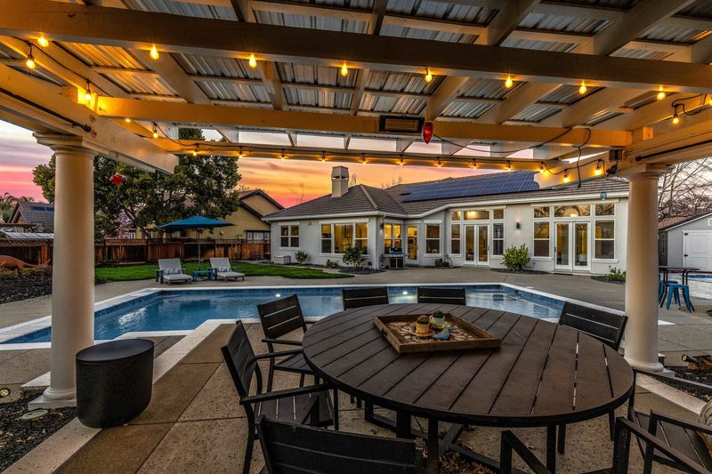 South Livermore estate in the coveted Oaks Development! This one has it all with single story living, gracious and sprawling with one of the best backyards out there! Custom pool with energy saving radiant solar heating, separate built-in spa, lighted/fan adorned gazebo, and so much more for entertaining or just family fun! This north facing entry welcomes you with today's modern landscape and easy care. You'll enjoy the contemporary elevation with newer three car garage doors, EV car charger in garage, and whole house solar for an energy efficient lifestyle. Some noted interior upgrades included engineered hardwood floors, light quartz island/counter, new white shaker cabinets with updated hardware, matching updated hardware throughout doors/etc, recessed lighting, whole house fan, newer HVAC system, and custom light fixtures throughout. All bathrooms upgraded with frameless enclosures with today's sought-after features. Located on a expansive, private lot, with views of the "lake", natural perserve, and surrounding valley hills. Side yard access with space of both sides of the lot. Premuim estate both inside and out, don't miss this one as it will not last on the market!