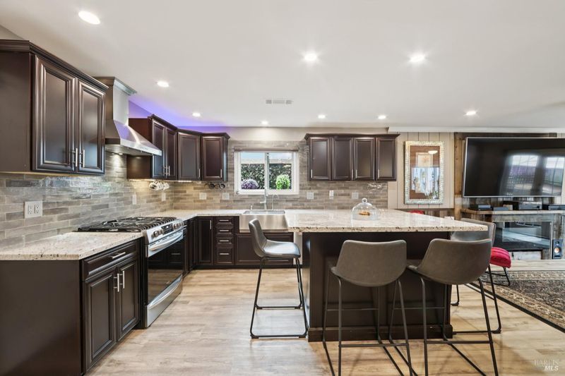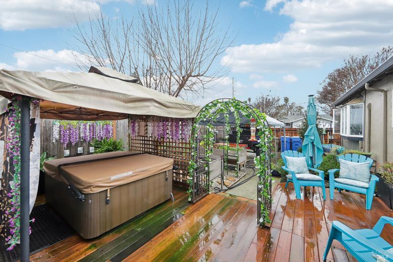 Highly desirable corner property, with paid solar, in a wonderful Napa neighborhood and location. This reimagined four bedroom now includes two ensuite bedrooms, and one has an exterior door, providing the option of making it it's own in-law unit. The fully updated kitchen is open to the Family and Dining Rooms, and includes Granite countertops, plenty of storage in the cabinets, upgraded stainless appliances with a stove hood that is more like a work of art, stainless farm sink, a large island with plenty of room to work, or just sit an relax, plus a large pantry. The rest of the house includes gleaming hardwood floors, and the Primary bedroom has a lovely Bay Window. All the bathrooms have been updated with care and style. Relax and enjoy either the front or rear decks, or meet whatever the need in either the hot tub or cold plunge. Fruit trees abound, with six varieties, including Passion Fruit, Cherry and Peach, just to name a few. Take advantage of the rear gates with whatever off-street parking needs you may have, or just use the large yard for whatever you have in mind. So much to see, and way too much to mention; you will want to see this one in person today!