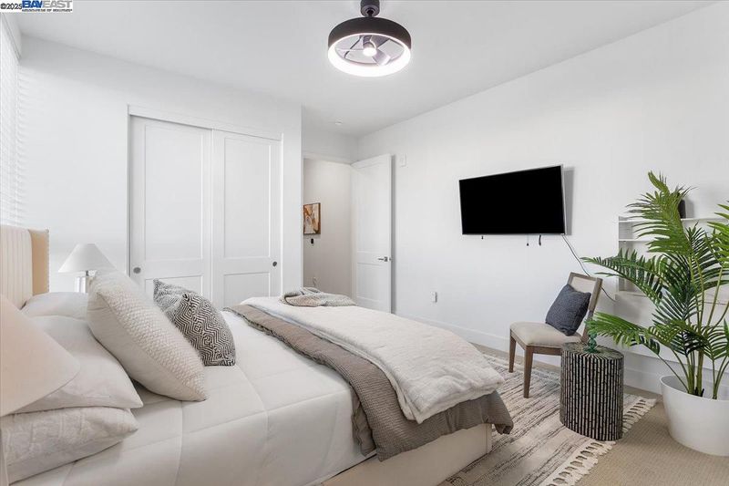 DON'T MISS THIS. A two-story luxury condo that elevates modern living in Fremont. This property features a bright open concept layout, private street-level entry and a secured attached two-car garage with EV charging capabilities, blending high-end design with everyday convenience. The ground floor includes a grand foyer and a private ensuite, offering comfort and privacy on its own level. Upstairs, an impressive open-concept kitchen, living, and dining area serves as the heart of the home, with expansive sliding doors that open to a private wraparound balcony for seamless indoor-outdoor living. A bright hallway leads to two additional bedrooms and two full bathrooms, including a spacious primary ensuite with a walk-in closet and dual vanity. Residents of this highly desirable community enjoy access to resort-style amenities including a clubhouse, fitness center, pool, spa, and beautifully maintained outdoor spaces. Situated near top-rated schools, major commuting routes, BART, and Fremont’s vibrant shopping and dining corridors, this home offers convenience without sacrificing luxury. This is a rare opportunity to own a home that offers luxury, space, and modern functionality.