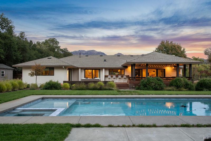 In the heart of California's renowned Napa Valley, this beautiful Calistoga retreat blends refined wine-country living with relaxed, family-friendly charm. Set on over two acres and just a short walk from downtown Calistoga's shops, tasting rooms, and restaurants, the property offers a rare mix of privacy and convenience. A sparkling pool anchors the outdoor experience, complemented by a stunning pool house that overlooks the water, perfect for entertaining or quiet relaxation. The grounds feature a hobby vineyard, adding a touch of authenticity to the wine-country lifestyle, along with open lawns and mature landscaping ideal for gatherings or serene evenings under the stars. Inside, the newly remodeled home invites natural light and seamless indoor-outdoor living, with spaces designed for both family comfort and elegant hospitality. Whether enjoyed as a full-time residence or a luxurious vacation escape, this Calistoga haven captures the essence of Napa Valley living where beauty, tranquility, and timeless charm meet in perfect balance.