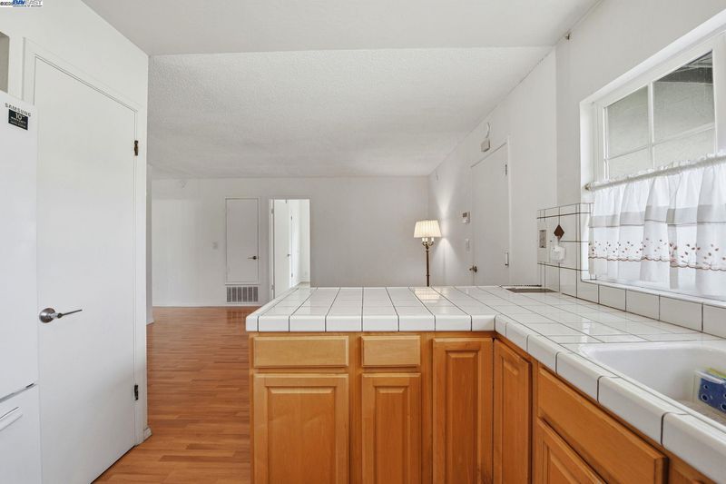 - Dishwasher, Electric Range, Refrigerator, Tile Counters, Electric Range/Cooktop, Disposal