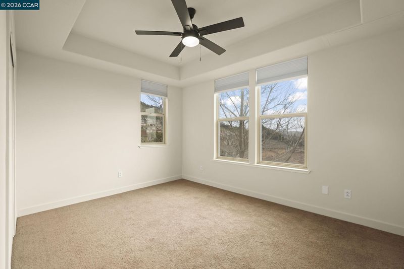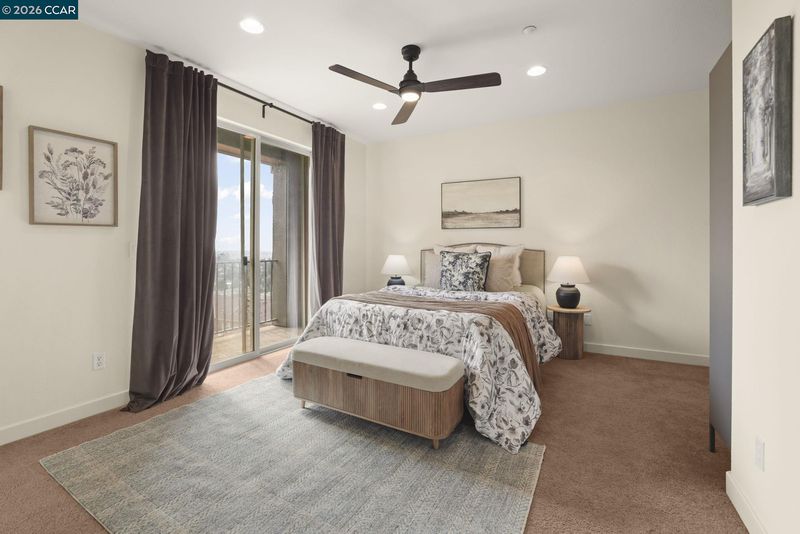 A sun-filled, south-facing residence in Monte Vista Villas with panoramic Bay views and a peaceful, private setting. This elegant 3-bedroom, 2.5-bath townhome spans 1,842 sq ft, featuring plush carpeting throughout, a statement fireplace, and an expansive open layout designed for effortless entertaining.The chef's kitchen is appointed with granite countertops, a generous center island, stainless steel appliances, and a walk-in pantry. The oversized primary suite is a private retreat unto itself- with its own walk in closet and spa like ensuite bathroom. Greet the morning with breathtaking Bay views, step onto your personal balcony, and indulge in a spa-caliber bath featuring a deep soaking tub, frameless glass shower, and dual vanity. Two additional bedrooms offer ample closet space and serene comfort. Located in Monte Vista Villas which delivers an enviable lifestyle: a private clubhouse, state-of-the-art fitness center, manicured parks, playgrounds, amphitheater, and curated community events. Ideally located being moments away from 580/13, scenic trails, and the boutiques and cafés of Montclair Village.