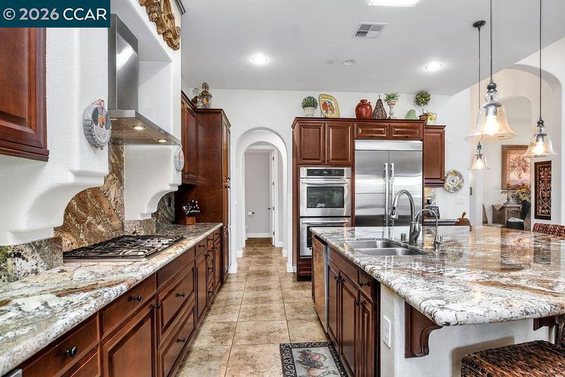 - Dishwasher, Double Oven, Gas Range, Microwave, Refrigerator, Breakfast Bar, Breakfast Nook, Stone Counters, Gas Range/Cooktop, Kitchen Island, Updated Kitchen