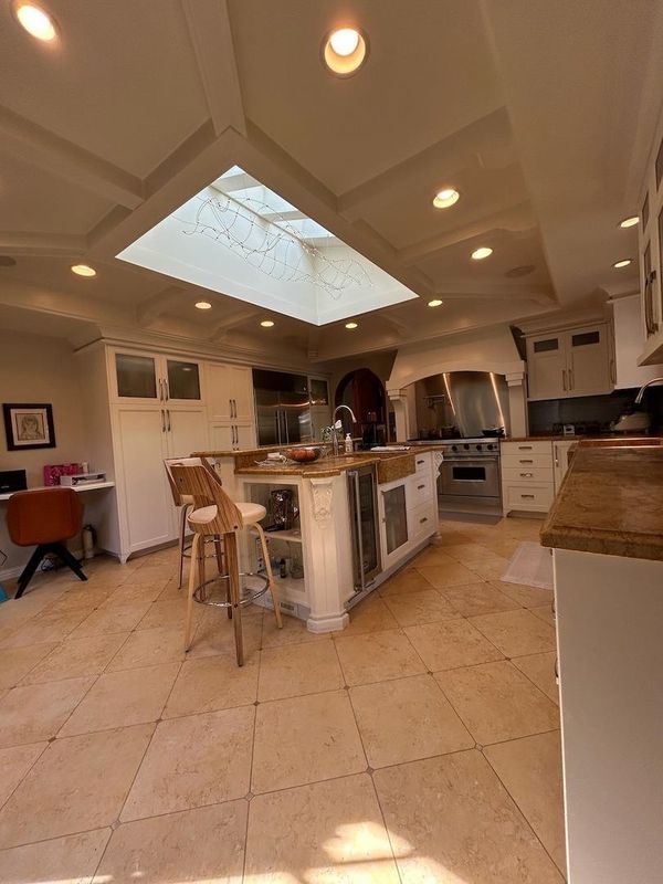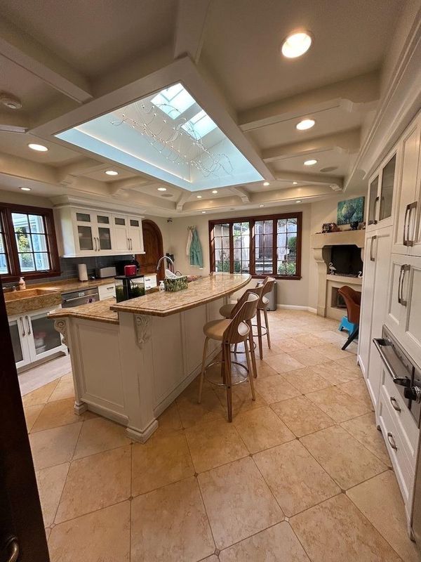 - Dishwasher, Double Oven, Range, Refrigerator, Washer, Breakfast Nook, Stone Counters, Eat-in Kitchen, Disposal, Kitchen Island, Range/Oven Built-in, Skylight(s), Updated Kitchen
