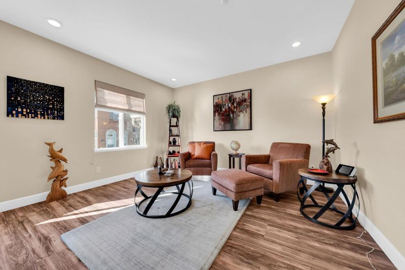 Stunning end unit condo built in 2002 but extensively remodeled since. This unit was constructed in the town home style -- with no neighbor above or below. Located at the edge of the development, there are attractive views of mountains and the park from many places inside. Strong sense of privacy here and abundant natural light. Immaculate inside! Kitchen features handsome stone counters over maple cabinetry with stylish hardware. Cabinets include pull out drawers and accessories for the gourmets. All stainless steel appliances including a gas cook top and stainless range hood. Kitchen island has a stainless double sink. There's even a pantry. The adjacent Family room area features built in cabinets and two smaller Frigidaire refrigerators, one for wine. All refrigerators are included in the sale. Kitchen includes an informal dining and patio access. Living room and formal dining area are combined with a comfortable amount of space. No expense spared to recently remodel the primary bathroom with new cabinetry, dual sinks, new fiaucets and lighting, and a generous shower. Primary suite has a walk in closet with organizer. Convenient separate laundry room upstairs. High ceilings, cork floors, recessed lighting and custom blinds. Also central AC, Car charger and more!