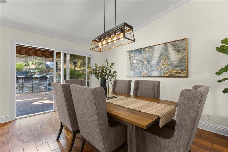 Tucked away in a desirable Danville court location, this beautiful home offers 4 bedrooms, 3 bathrooms, and approx. 2,697 sq. ft of living space plus a 31,350 sq. ft lot. Wood & carpet flooring complementing the bright and inviting kitchen featuring stone countertops, a 5-burner gas range with grill, and a casual eat-in area. The light-filled living room showcases a cozy fireplace and picturesque hillside views, while a formal dining room provides the perfect setting for entertaining. The spacious primary suite is a true retreat, offering walk-in closets and a well-appointed bathroom with a soaking tub and separate stall shower. Bedrooms are generously sized, providing flexibility for family, guests, or a home office. A welcoming family room with built-ins adds extra living space, along with a bedroom and bathroom that offer convenient outside access to the pool area. Step outside to an inviting outdoor patio designed for year-round enjoyment, complete with a full outdoor kitchen, swimming pool, and hot tub—ideal for entertaining or relaxing in your private oasis. A bonus room plus abundant storage and a workbench adds even more functionality; buyer to verify square footage and permits. This home blends comfort, style, and indoor-outdoor living in a sought-after Danville setting.