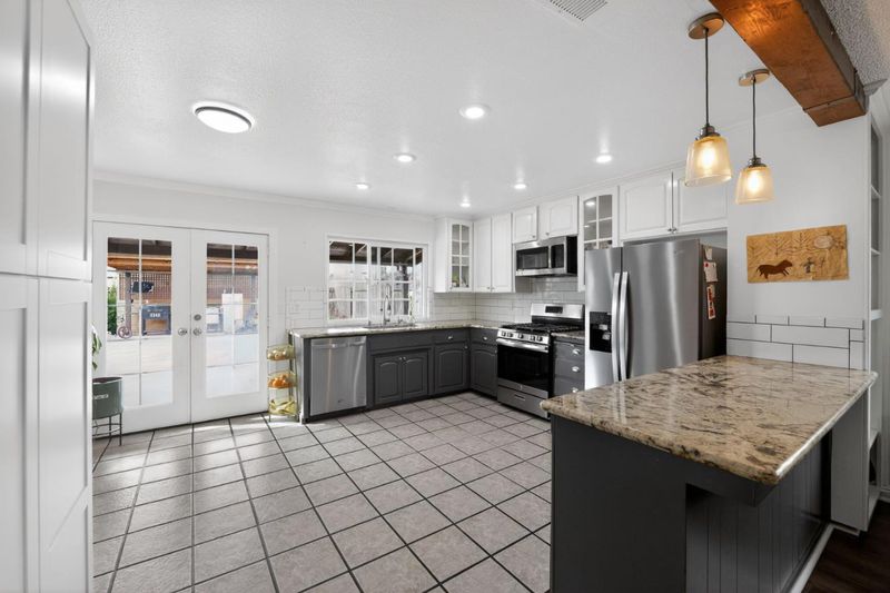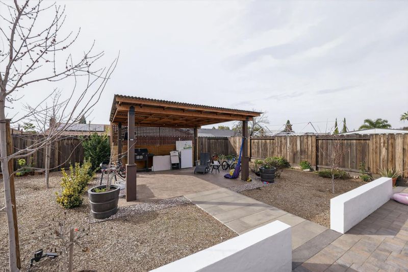 Welcome to this charming 3-bedroom, 2-bath home located in the City of Manteca. Boasting 1,521 sq. ft. of thoughtfully designed living space, this residence offers a functional and open layout perfect for modern living. At the heart of the home is a beautifully updated kitchen featuring two-toned cabinetry, granite countertops, a stylish tile backsplash, and Whirlpool stainless steel appliances. The kitchen island with a sitting area flows seamlessly into the family room, creating an inviting open-concept space ideal for entertaining and everyday living. Durable laminate and tile flooring extend throughout the home, combining easy maintenance with timeless appeal. Cozy up to the gas fireplace during cooler months, adding warmth and character to the living area. Central air conditioning and heating provide year-round comfort. Convenience is enhanced by a 220V electrical hookup in the garage, making laundry and other household tasks effortless. Step outside to a professionally landscaped backyard featuring elegant pavers and a covered pergola, offering a serene space to relax and enjoy warm summer days. Experience comfortable living and thoughtful design in this inviting Manteca Home.