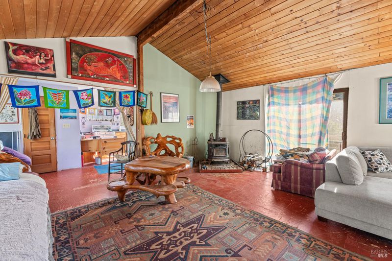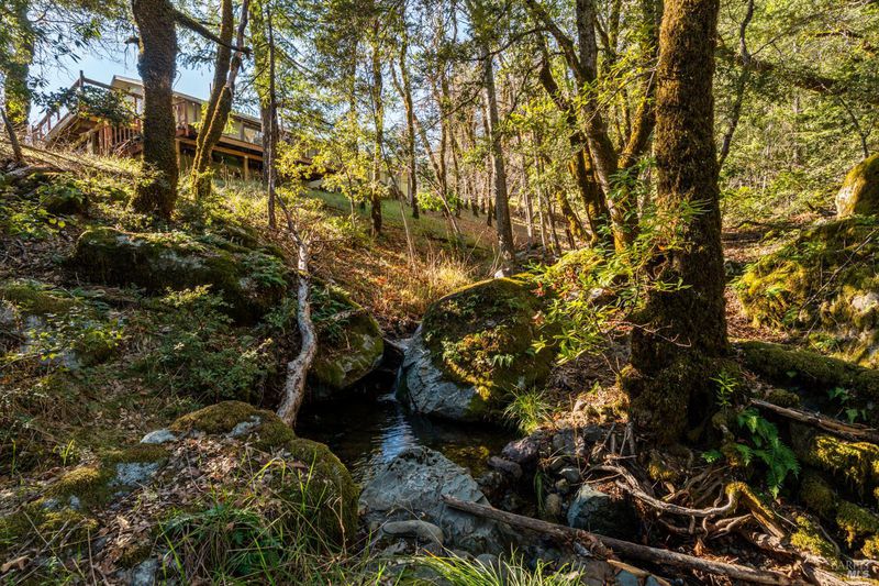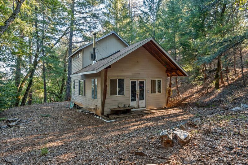 Tucked into the Iron Creek / Spyrock area above Laytonville, this private, off-grid mountain property offers just over 22 acres of clean, well-maintained land with creeks flowing through the property and alongside both the home and the workshop. The home is bright and cozy, with a wood stove, a newer roof, and a large front deck that wraps around to a shady back deck overlooking the creek. At the base of the steps are two clawfoot soaking tubs, offering a quiet place to relax while listening to the sound of the creek. The home is complete and very livable as-is, with the opportunity for a new owner to add a few finishing touches, such as completing the exterior paint and select interior finishes, over time. Set a short distance from the main home, the large two-story workshop offers excellent separation and flexibility. The building is insulated and includes a wood stove, and with further finishing may lend itself to additional living space, guest accommodations, a studio, or workspace. The property is off-grid with solar power, a septic system, a reliable year-round spring water source, and approximately 12,000 gallons of water storage, creating a well-established setup for rural living. Sunny garden areas are balanced by shaded woodland, making the property well suited for homesteading, retreat use, or full-time rural living.