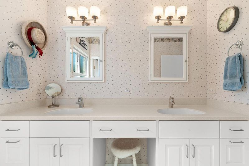 - Double Sinks, Full on Ground Floor, Primary - Stall Shower(s), Skylight, Stall Shower, Tile, Updated Bath