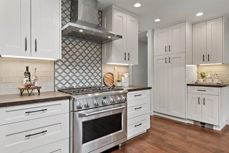 - Cooktop - Gas, Countertop - Quartz, Dishwasher, Garbage Disposal, Hood Over Range, Microwave, Oven Range, Refrigerator, Skylight, Wine Refrigerator