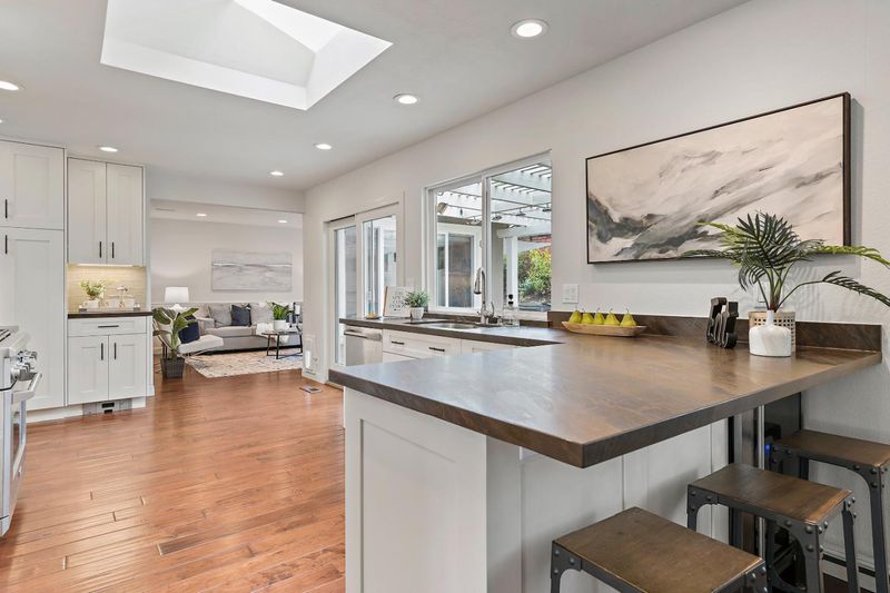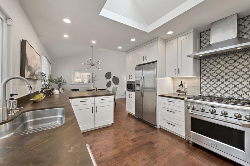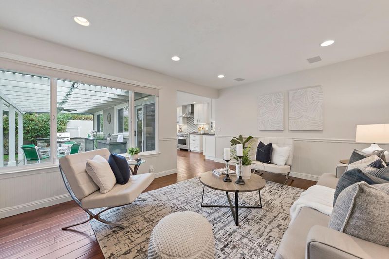 Beautiful upgraded home on a large 8140+/- SF lot, nestled in the Pierce Ranch neighborhood, across from the serene Almaden Meadow Park. Step through a paver landscaped courtyard into a welcoming entry w/tile flooring, skylight & decorator mirrors. The living room boasts a cathedral ceiling, a large window looking out to front courtyard, and seamlessly blends into a dining room combo ideal for entertaining. Gourmet kitchen is a cook's dream, featuring a 6-burner Monogram range, professional Zephyr hood, glass tile w/decorator backsplash, quartzite counters, beautiful shaker cabinets w/soft-closing drawers, pantry cabinet & skylight offering functionality with flair. Relax in the family room beside the fireplace with a built-in entertainment unit or enjoy the private outdoor oasis, w/pergola, BBQ area, and many built-in cabinets with finished concrete countertops, great for family fun or entertaining. The primary suite features a slider out to a private patio and hot tub, providing a tranquil retreat. Remodeled en-suite bath features dual sinks, a spacious stall shower, and walk-in closet. Green thumbs will appreciate the side yard and fruit trees. Updated hall bathroom and engineered floors. Close to Almaden Schools, Quicksliver Park, Almaden Country Club, and shopping.