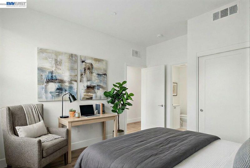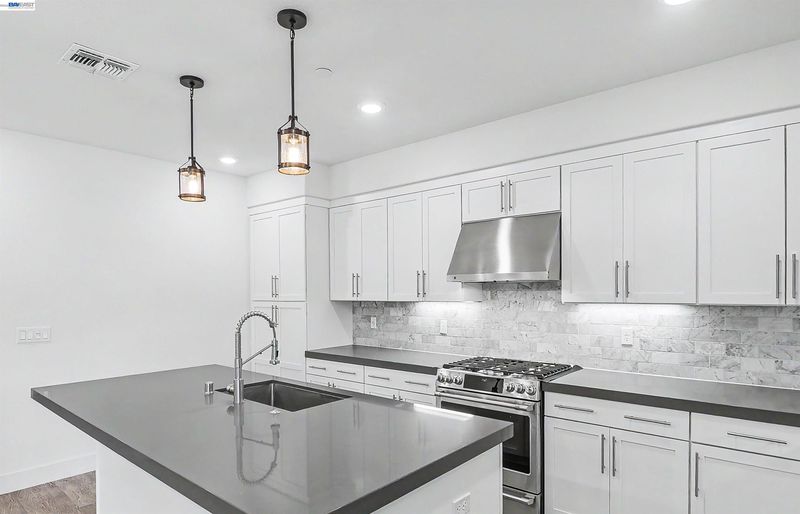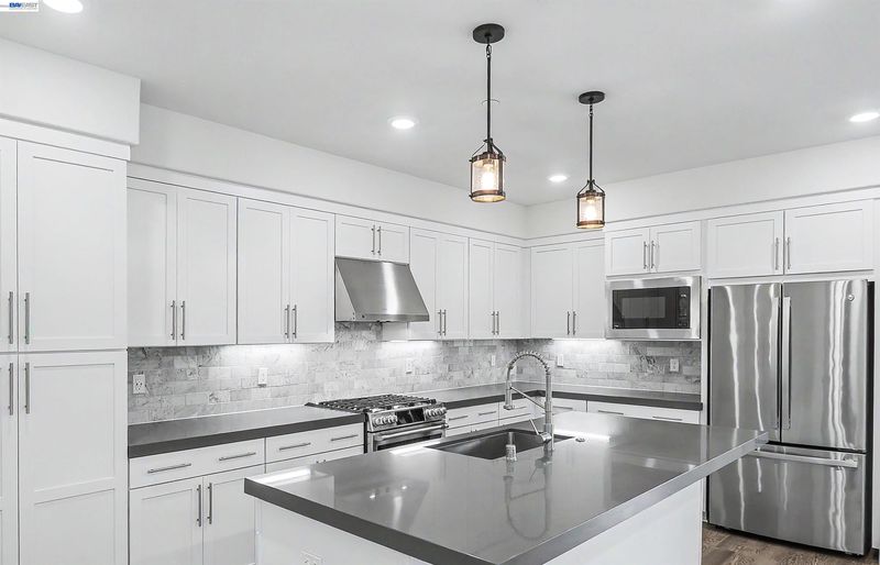 Welcome to this stunning home in Fremont's sought-after Innovation Community, offering one of the best floor plans. Built in 2020, this modern residence features 3 beds, 3 baths, 2 story home, 1798 sqft of bright open living space, and attached 2-car side-by-side garage. The main level includes a private bedroom with ensuite-ideal for guests or a home office. Upstairs showcases a gourmet kitchen with quartz countertops, subway backsplash, oversized island, and premium appliances, flowing into spacious living and dining areas filled with natural light. Enjoy a wraparound balcony perfect for relaxing or entertaining. The primary suite offers a spa-like bath and custom walk-in closet. Upgrades include owned solar panels, EV charger, tankless water heater, water softener, smart home features, Ring doorbell, and a WiFi-enabled garage. Community amenities include pool, gym, clubhouse, and parks. Prime location near BART, major commute routes, and directly across from Lila Bringhurst Elementary School (offers a Mandarin immersion program).
