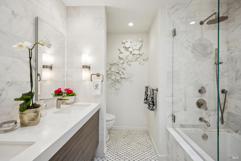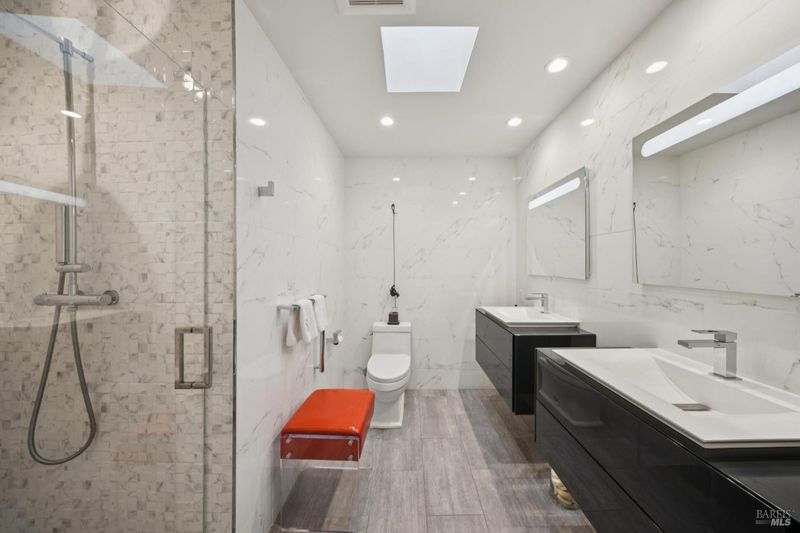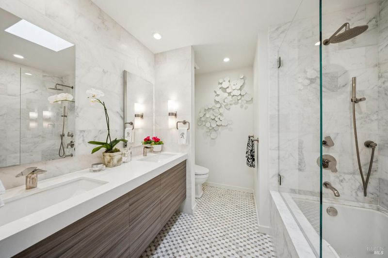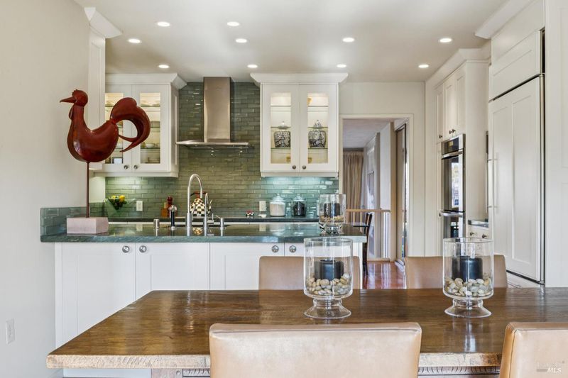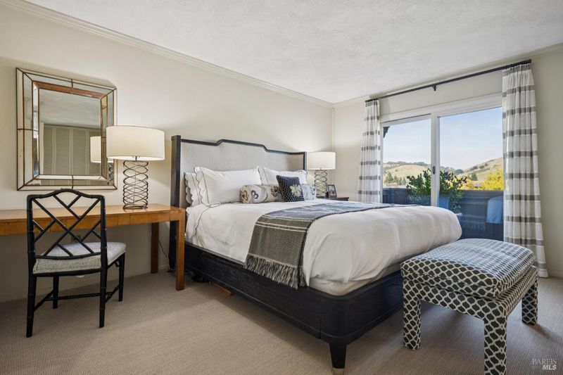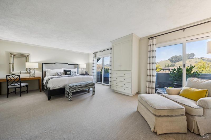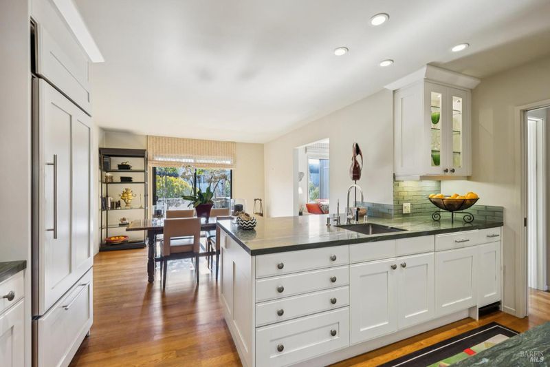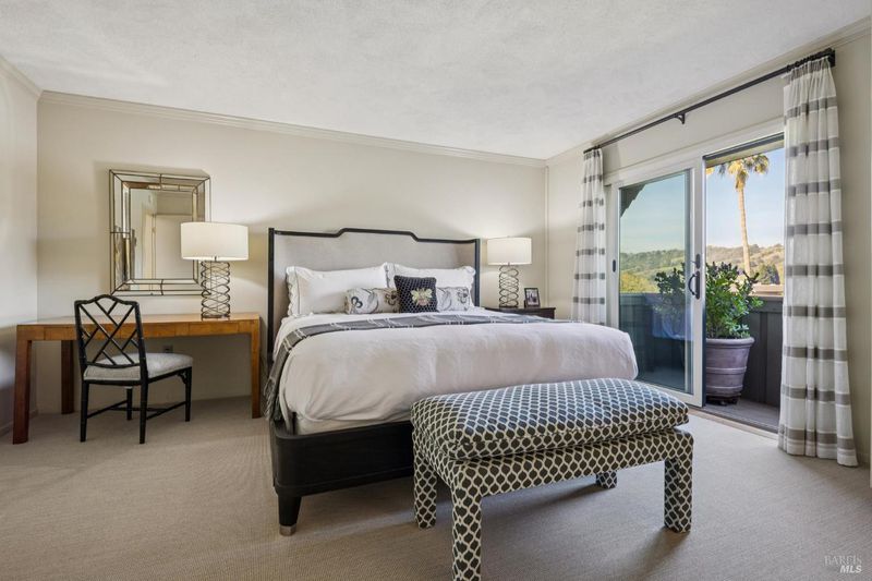 Sophisticated and stylish Peacock Gap townhome offering an exceptional blend of comfort, privacy, and refined design. One of only four large units of this size within the desirable 30 Knoll Recreation Townhouses, this elegant residence showcases numerous high-end upgrades and thoughtful design throughout. The home features three bedrooms plus a cozy den, a formal dining area, and a beautifully redesigned kitchen with a dedicated dining space ideal for both everyday living and entertaining. Hardwood floors grace the main level, while remodeled bathrooms reflect quality craftsmanship and timeless style. The spacious primary suite is a true retreat, highlighted by a stunning spa-like bathroom with high-end finishes, a luxurious jetted tub, and heated floors. Enjoy seamless indoor-outdoor living with a custom-designed patio featuring flower borders, offering privacy and direct access to the dramatic pool area. The community boasts two pools joined together to create a slightly undersized Olympic-style pool, along with a private clubhouse and Swedish saunas providing a resort-like experience just steps from home. Additional features include a large laundry and storage area, abundant closet space throughout, and a two-car garage. Ideally situated next to Peacock Gap Golf Course and offering easy access to China Camp State Park's extensive hiking and biking trails, this exceptional townhome delivers elegance, comfort, and an enviable lifestyle in one of Peacock Gap's most sought-after communities.