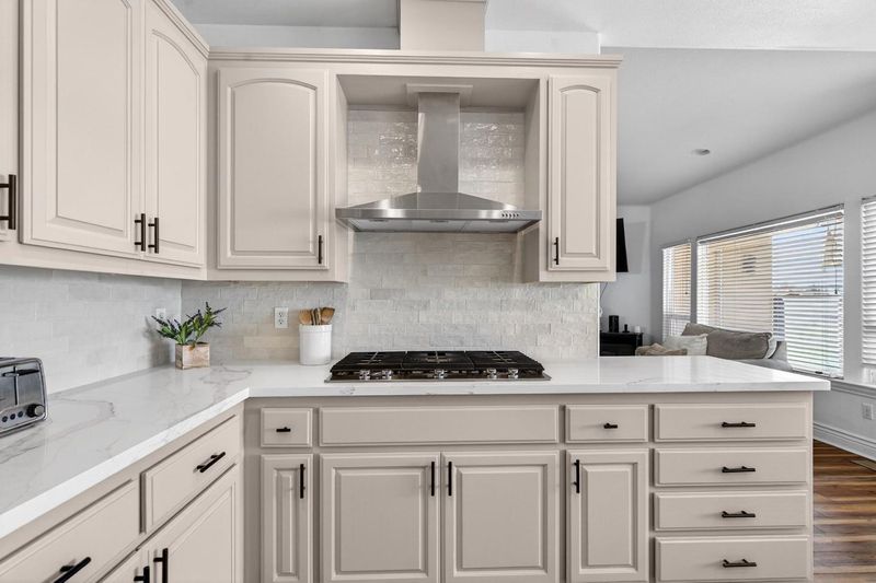 - Countertop - Tile, Dishwasher, Cooktop - Gas, Microwave, Pantry, Exhaust Fan, Oven - Electric