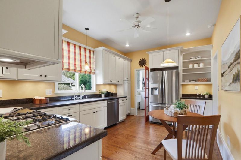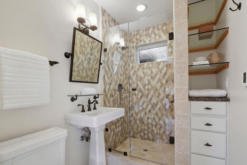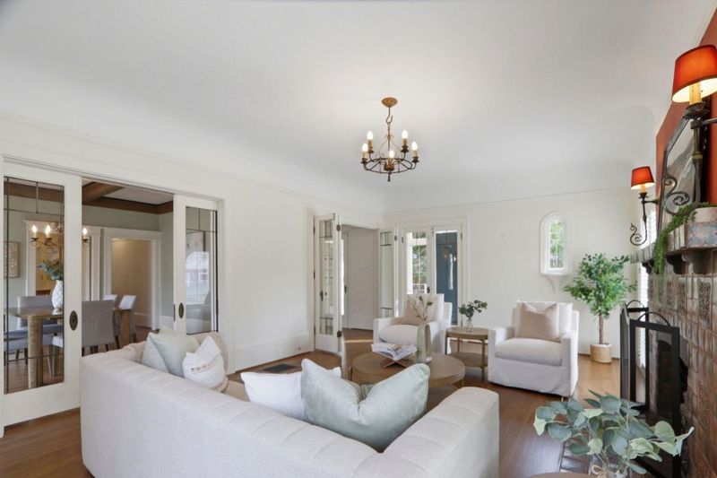 Stately classic 1925 Spanish revival home, updated and enhanced for stylish modern living. So many upgrades in this incredible property while maintaining the charm and elegance of the period. Enclosed porch leads to a formal entry room with French doors to the expansive living room with coved ceilings, large bright cheerful windows, classic chandelier and sconces, and a cozy fireplace with gas log and original custom tile. Fresh refinished solid oak flooring throughout the home. Large formal dining for entertaining. Two en-suite bedrooms plus a third bedroom ideal for office use with built-in desk. Totally updated and remodeled kitchen with newer appliances, water filtration, and under-cabinet lighting. Primary suite with French doors, cedar closet, jetted tub, heated bathroom floor, and ceiling fan. Second en-suite bath built in 2017. Incredible guest cottage converted from garage in 2010 with spacious bedroom, full bath, kitchenette and living room with large closets, tile floor and French doors, ideal for multi-generation family or guests. Large deck leads to a mature landscaped yard with a patio for outdoor enjoyment. Close to SJSU, major commute arteries, downtown restaurants and entertainment in highly desirable Naglee Park community!