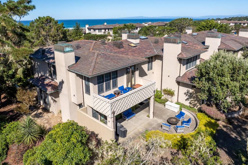 Overlooking the iconic 12th hole of Spanish Bay Golf Links, this exceptional end-unit condominium offers over 4,000 sq. ft. of refined coastal living space. Elegant features include a gracious formal entry, high ceilings, grand staircase, inviting living and dining rooms with fireplaces, classic hardwood and slate flooring, a library/den, separate office/game room, formal dining room, and a gourmet kitchen highlighted by custom granite and marble finishes, large island with breakfast bar seating, dine-in banquette and plenty of storage. The thoughtfully designed floor plan features an expansive primary bedroom suite with gas log fireplace, large walk-in closet, spa-like bath and private balcony overlooking the course, plus three en-suite guest bedrooms for family, friends and golf buddies. The private front courtyard invites coastal indoor-outdoor living, while the rear patio area provides a serene, secluded setting with sweeping golf course and forested views, fire pit and barbeque area. Complete with peeks of the ocean, an over-sized detached two-car garage and effortless access to the world-class amenities of The Inn at Spanish Bay, this residence captures the essence of resort-style living within the exclusive community of Pebble Beach.