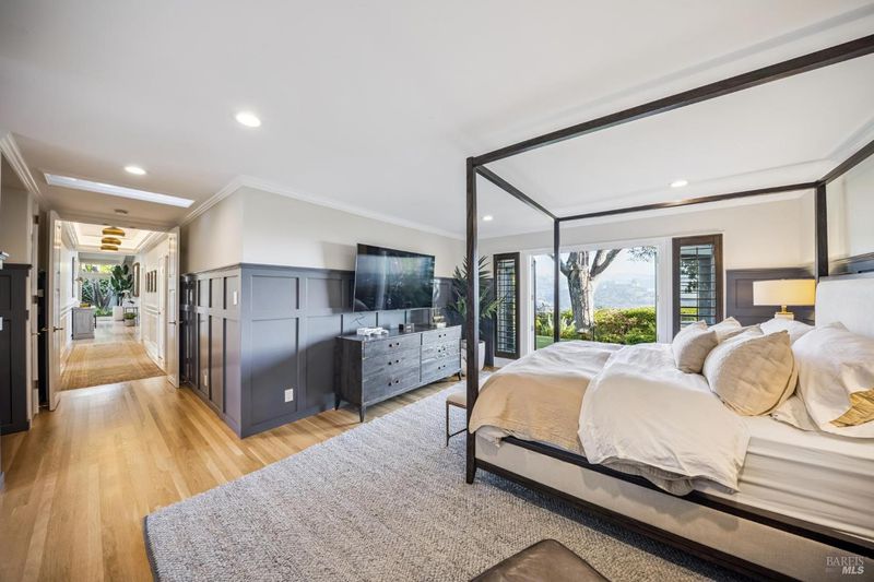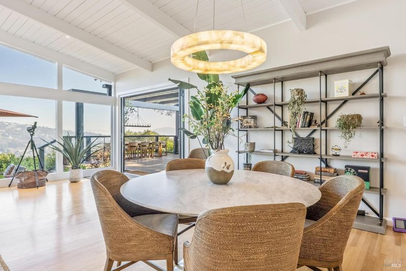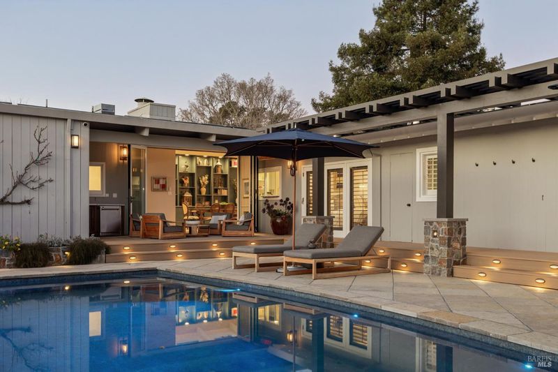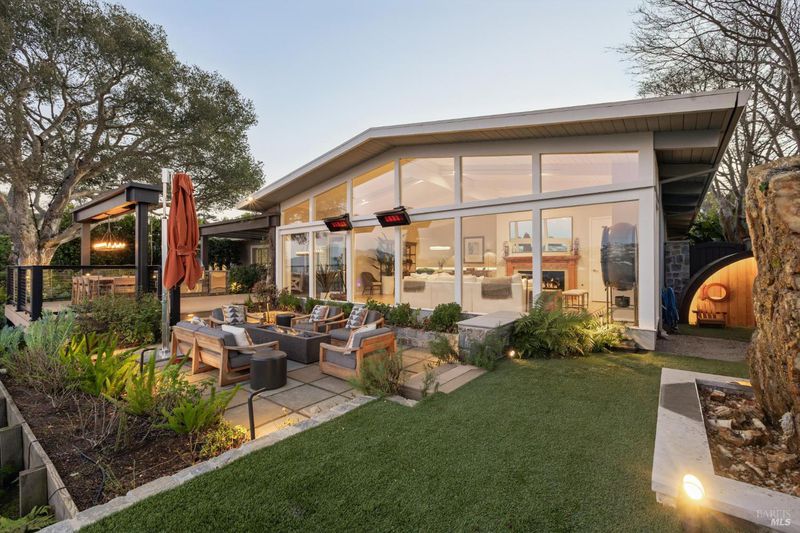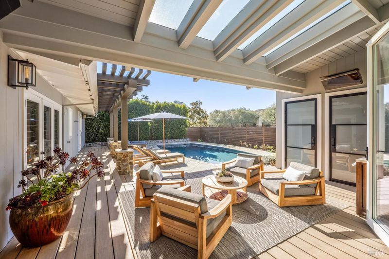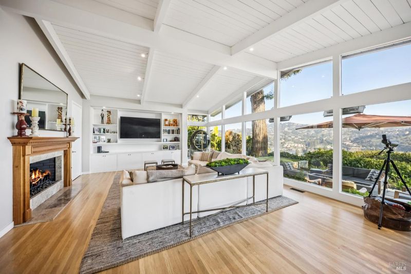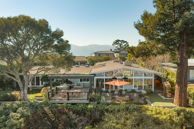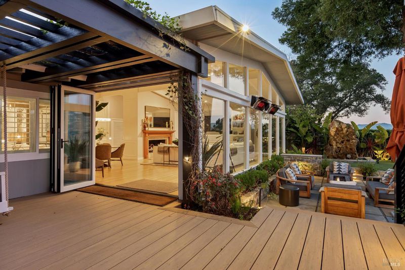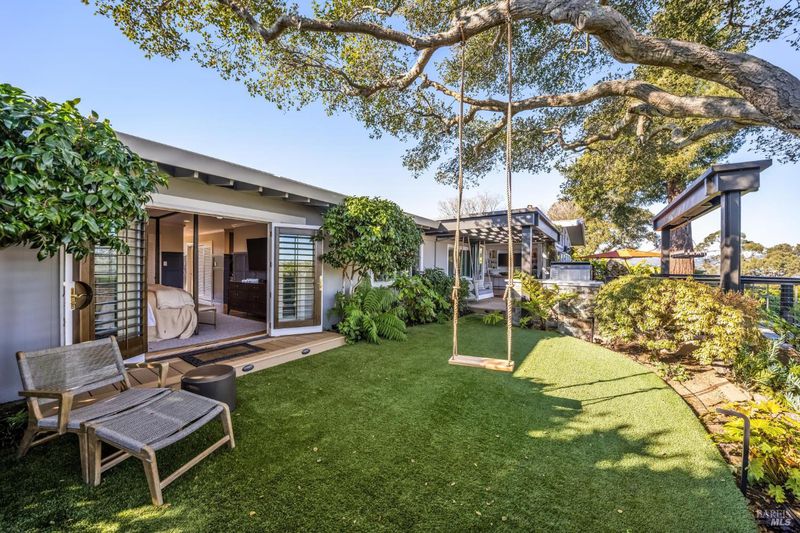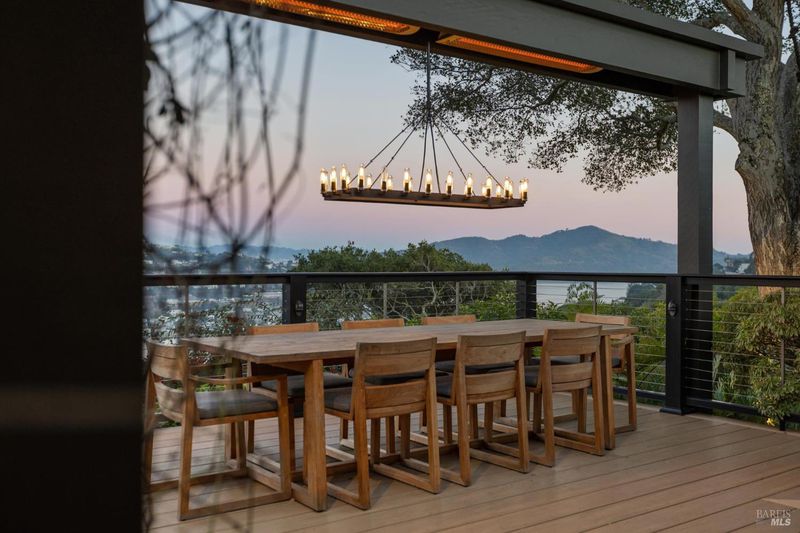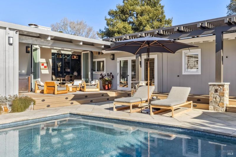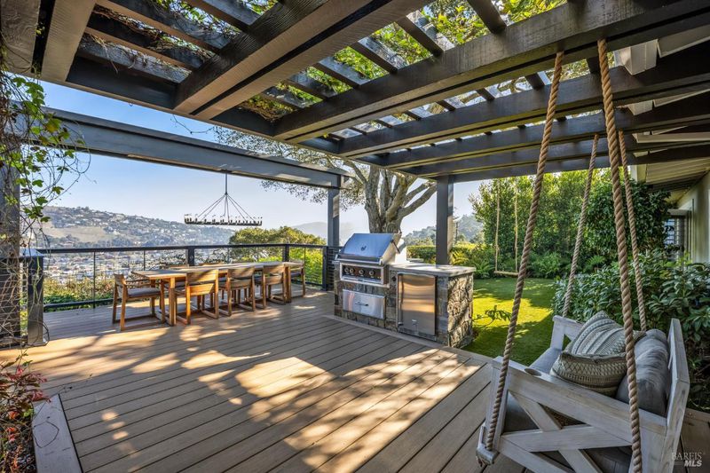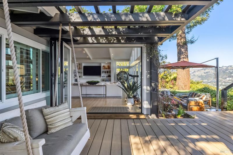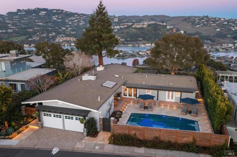 This beautifully renovated home offers the exceptionally rare combination of single-level living atop Belvedere Island, with spectacular views and seamless indoor/outdoor flow on a wide, flat cul-de-sac street with ample parking. The sun-drenched living room features a dramatic 12.5 foot vaulted ceiling and a large folding NanaWall that opens to a show-stopping entertaining deck complete with an outdoor Hestan kitchen, heated dining area, two lawns, and an additional connected patio with fire pit, overhead heaters, and a disappearing TV. The kitchen and dining area open to the private front yard through a second NanaWall, creating a true resort-style setting with a covered, heated patio, saltwater pool, and outdoor shower. The bedroom wing includes a gracious primary suite with a luxurious spa-like bath, built-in closets, and private access to both the backyard and the pool deck. Three additional bedrooms share a spacious hall bath. The home and grounds were fully updated and modernized in 2023 with high-end materials, custom woodworking, and refined luxury finishes throughout. Award-winning schools are just down the hill, along with downtown Tiburon, The San Francisco Yacht Club, and Belvedere Park. Enjoy an easy 20-minute commute to the San Francisco side of the Golden Gate Bridge, plus the picturesque Tiburon ferry just minutes away.