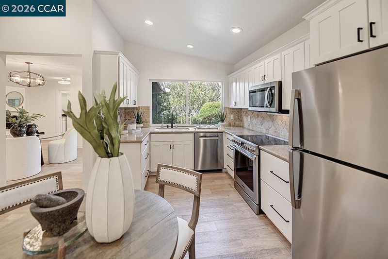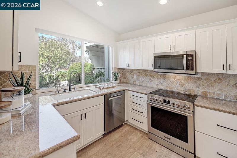- Dishwasher, Electric Range, Microwave, Refrigerator, Dryer, Washer, Counter - Solid Surface, Stone Counters, Eat-in Kitchen, Electric Range/Cooktop, Disposal, Skylight(s), Updated Kitchen