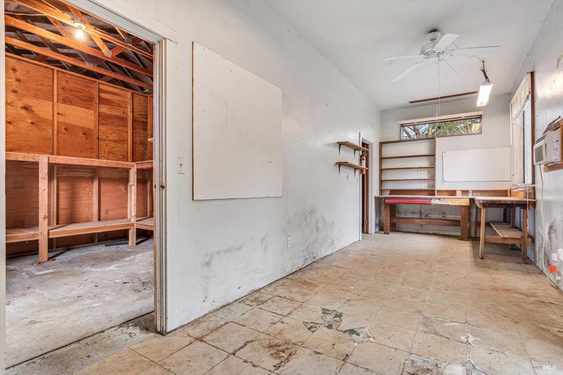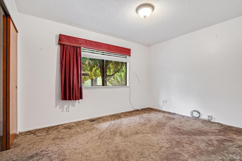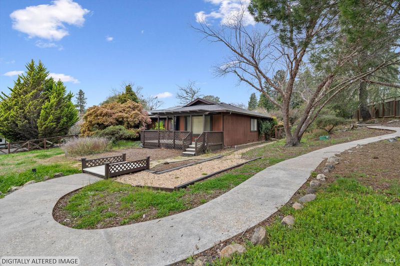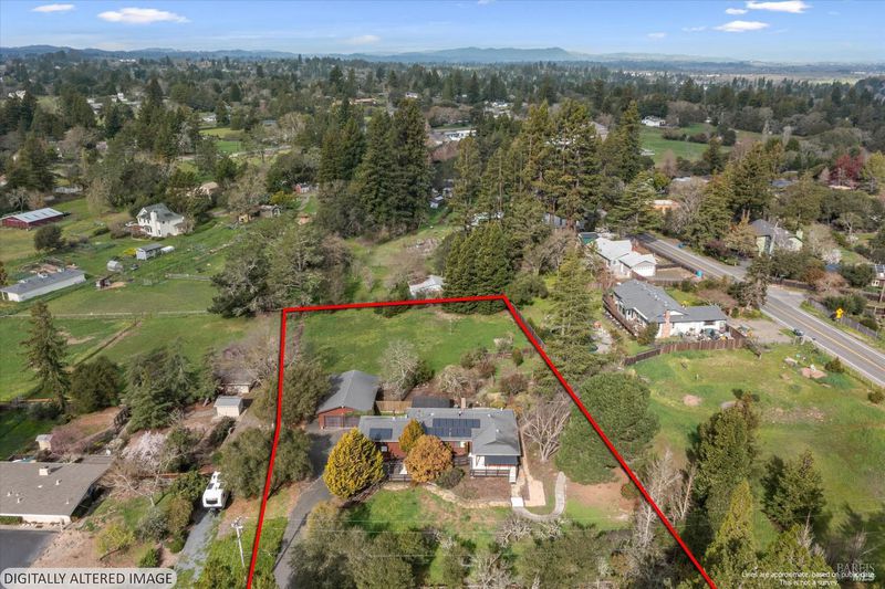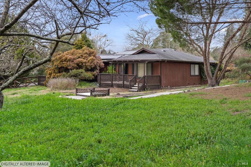 Predominantly single level home on a beautiful, usable, 1.25 acres in the Sebastopol countryside. A long wheelchair accessible ramp facilitates access to the front door from the driveway parking areas. The parcel itself is level to gently sloping with a small orchard in front, and a good sized, vehicle accessible pasture in back with fenced garden area and your own private redwood grove! Public records indicate 4 bedrooms, but only 3 are currently present. Significant past upgrades were made to the kitchen and both bathrooms. The kitchen has beautiful custom wood cabinetry, high quality windows, tile counter surfaces and floor, and a unique sculpted glass ceiling light fixture custom made for the prior owner. Custom wood trim and corbels highlight the dining room just off the kitchen. There are separate living and family rooms with wood flooring, including a pass thru bar from kitchen and 2 solar tubes in the family room. The apparent original garage has been converted; one can now enjoy a very large 2nd family room with multiple potential uses (has been used in the past as an Art Studio) featuring custom stained glass windows, open beam ceilings, a raised brick hearth with wood stove, mini split, and abundant storage. The Primary Suite features a shower over the large jetted tub, a walk-in closet with built-ins, and French patio doors to a completely screened-in, covered deck for year round outside enjoyment. I counted 19 solar panels on the roof (owned). The detached garage/shop building is approximately 26' x 40' (1,040 +/- sq. ft.!) which could comfortably accommodate 4+ cars PLUS shop space if the interior walls were reconfigured. The long driveway approach has room for an estimated 6-8 additional vehicles plus through access along the garage/shop to the rear portion of the property. Don't miss the small redwood grove at the top of property, a peaceful refuge and "cool spot" providing residents and visitors alike with a contemplative space and feeling of solitude right at home.